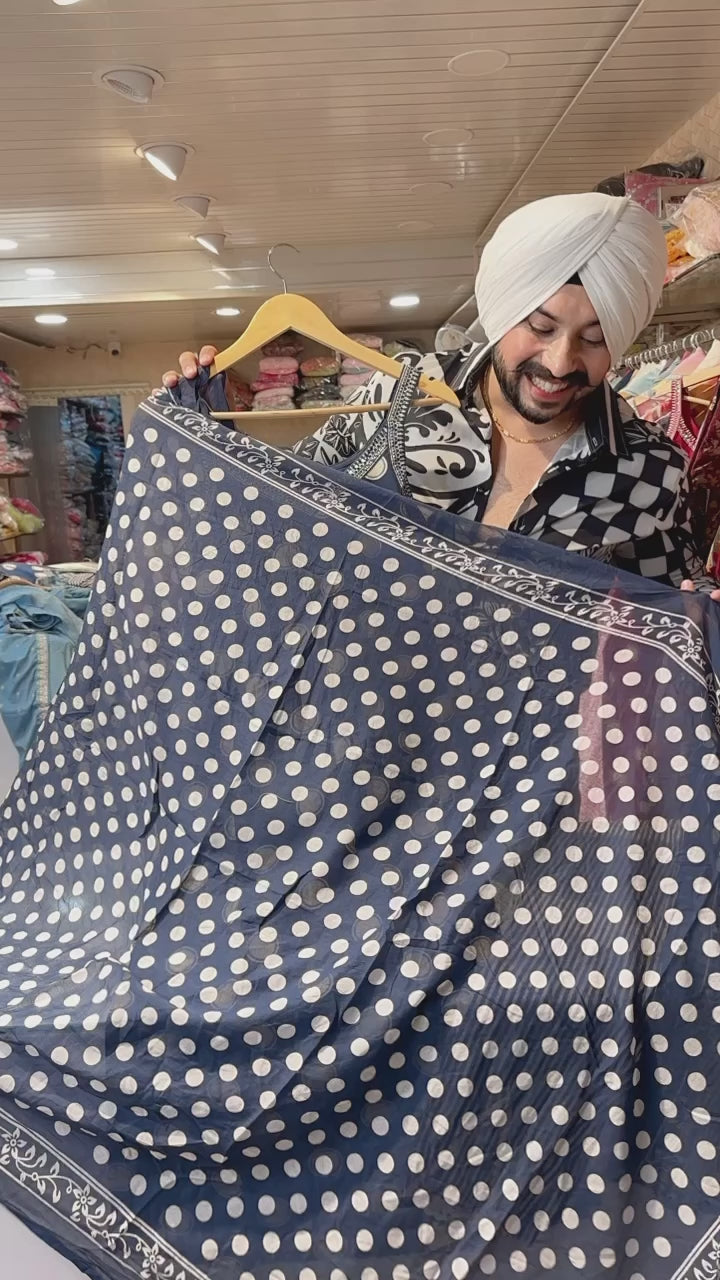 Blue Strap Sleeves Pure cotton suit with Side slit pants & beautiful Duppata