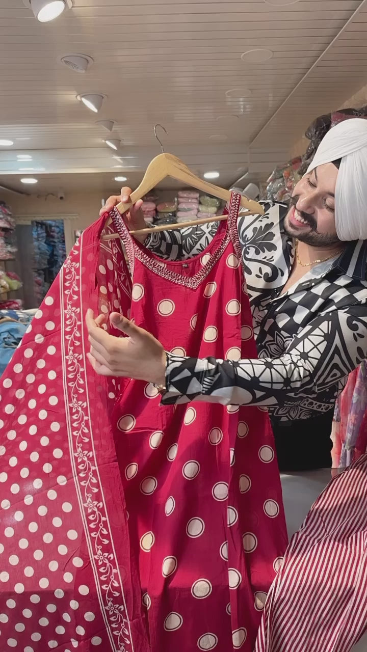 Reddish Maroon Strap Sleeves Pure cotton Suit with Side Slit pants & beautiful Duppata