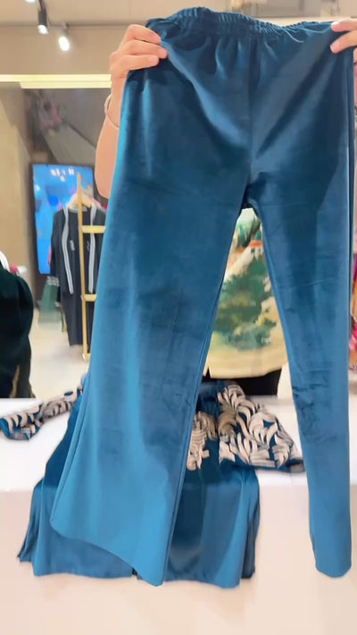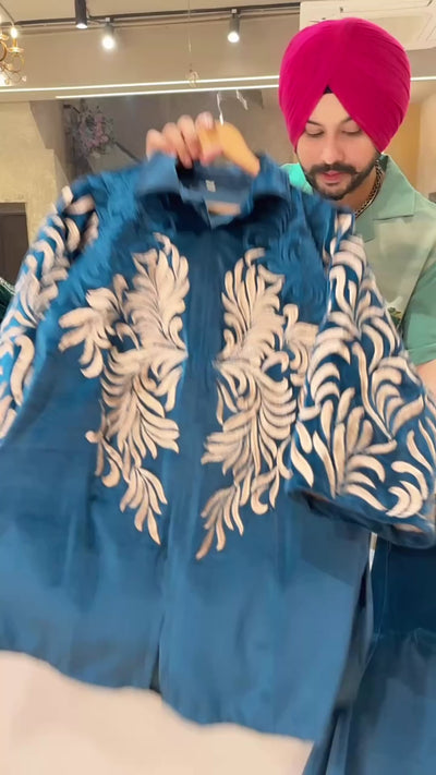 Teel Colour Stretchable Velvet Heavy Embroidered Party Wear Coord set