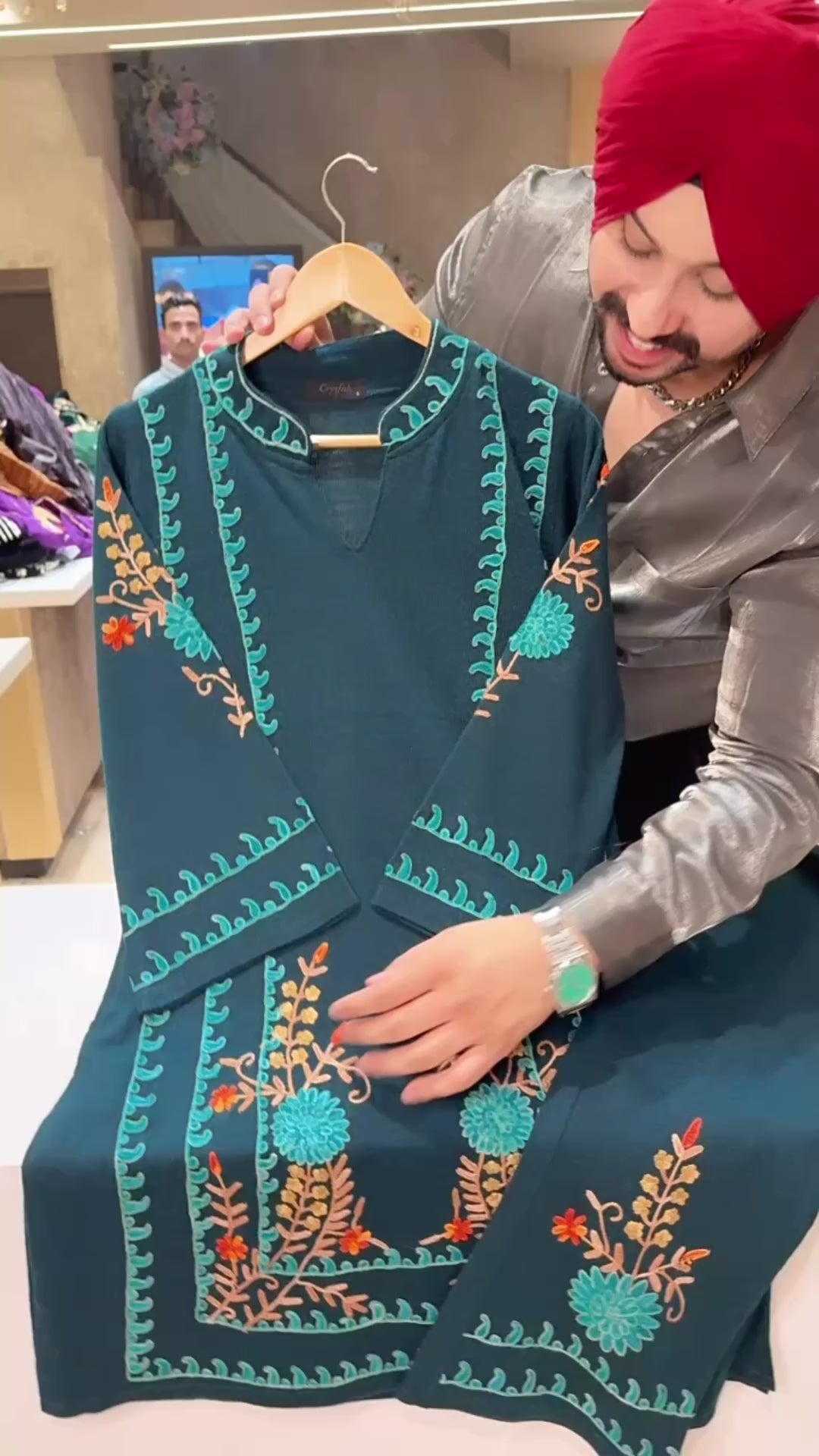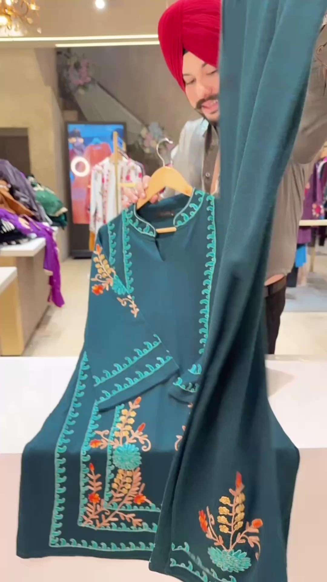 Teel Premium Strechable Woolen Long Length Kashmiri Embroidered Coord set