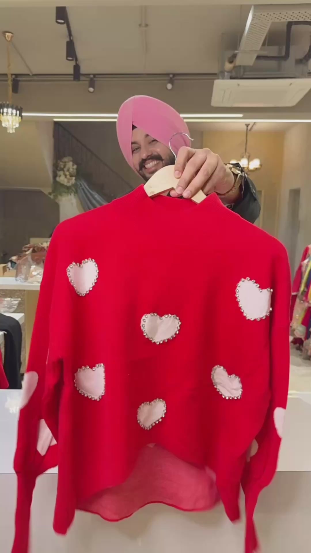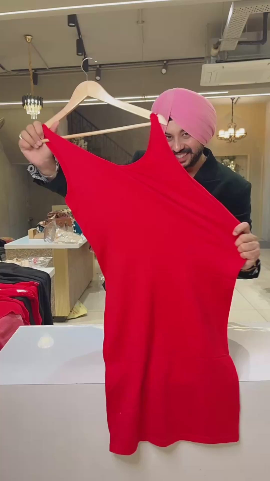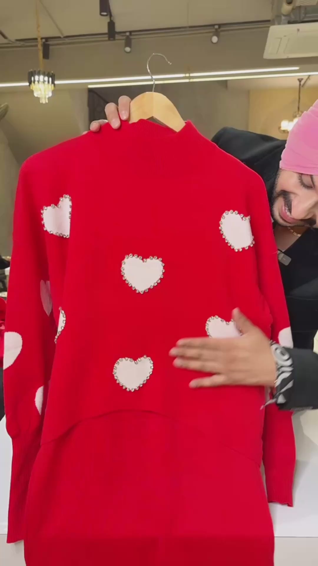Vibrant Red Imported Woolen Dress with High neck Crop top