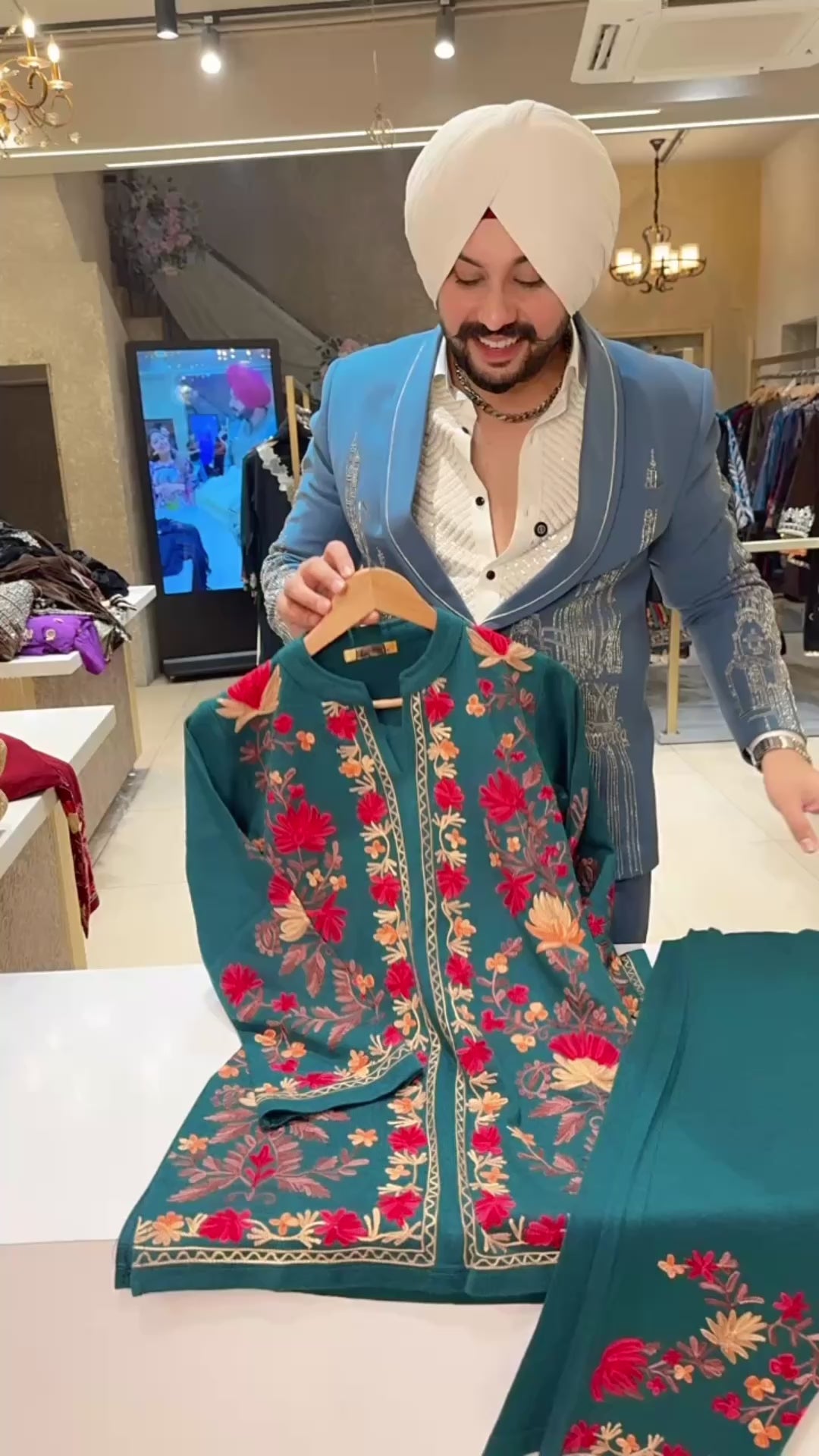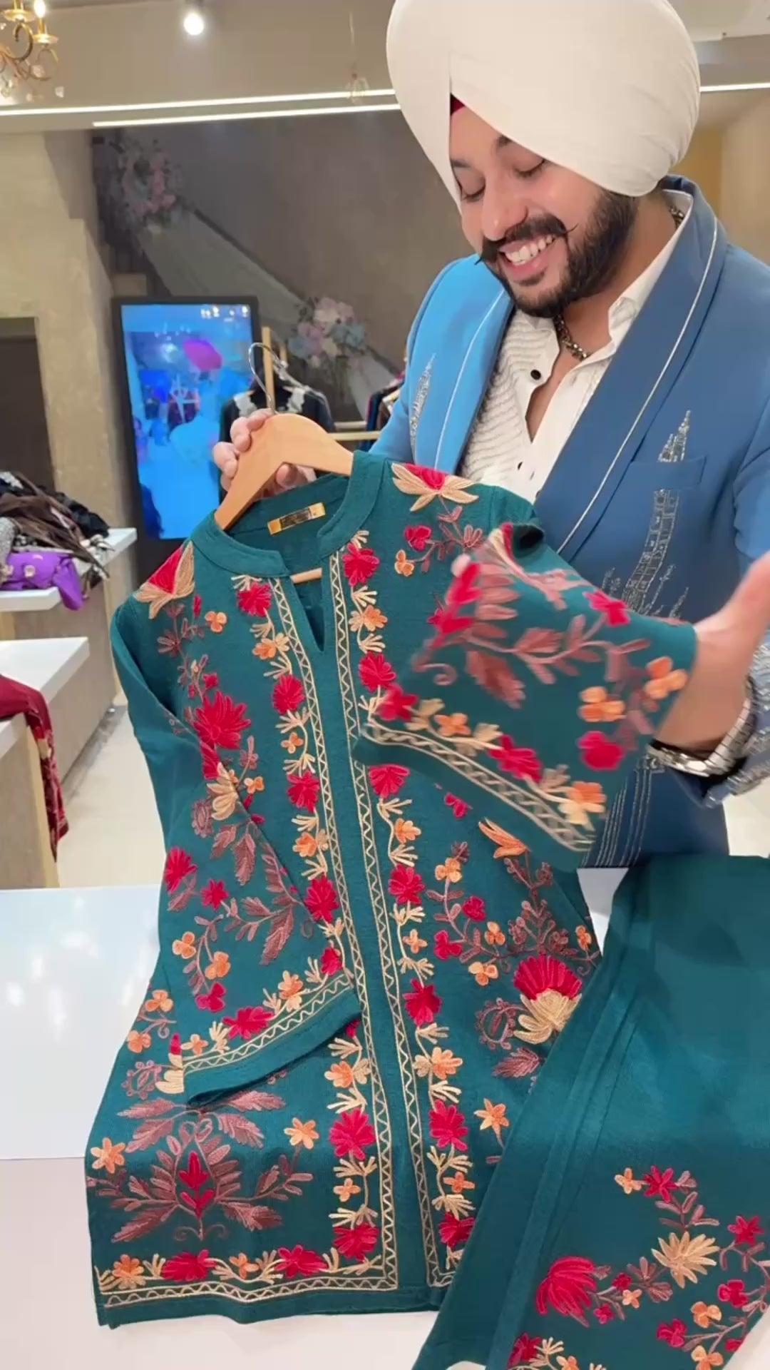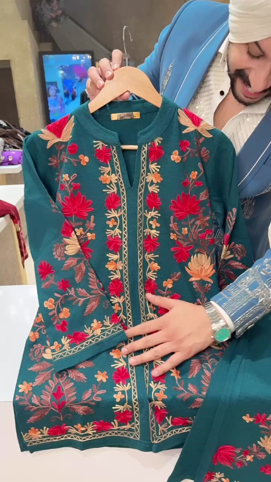 Peacock Premium Woolen Heavy Kashmiri Embroidered Coord set
