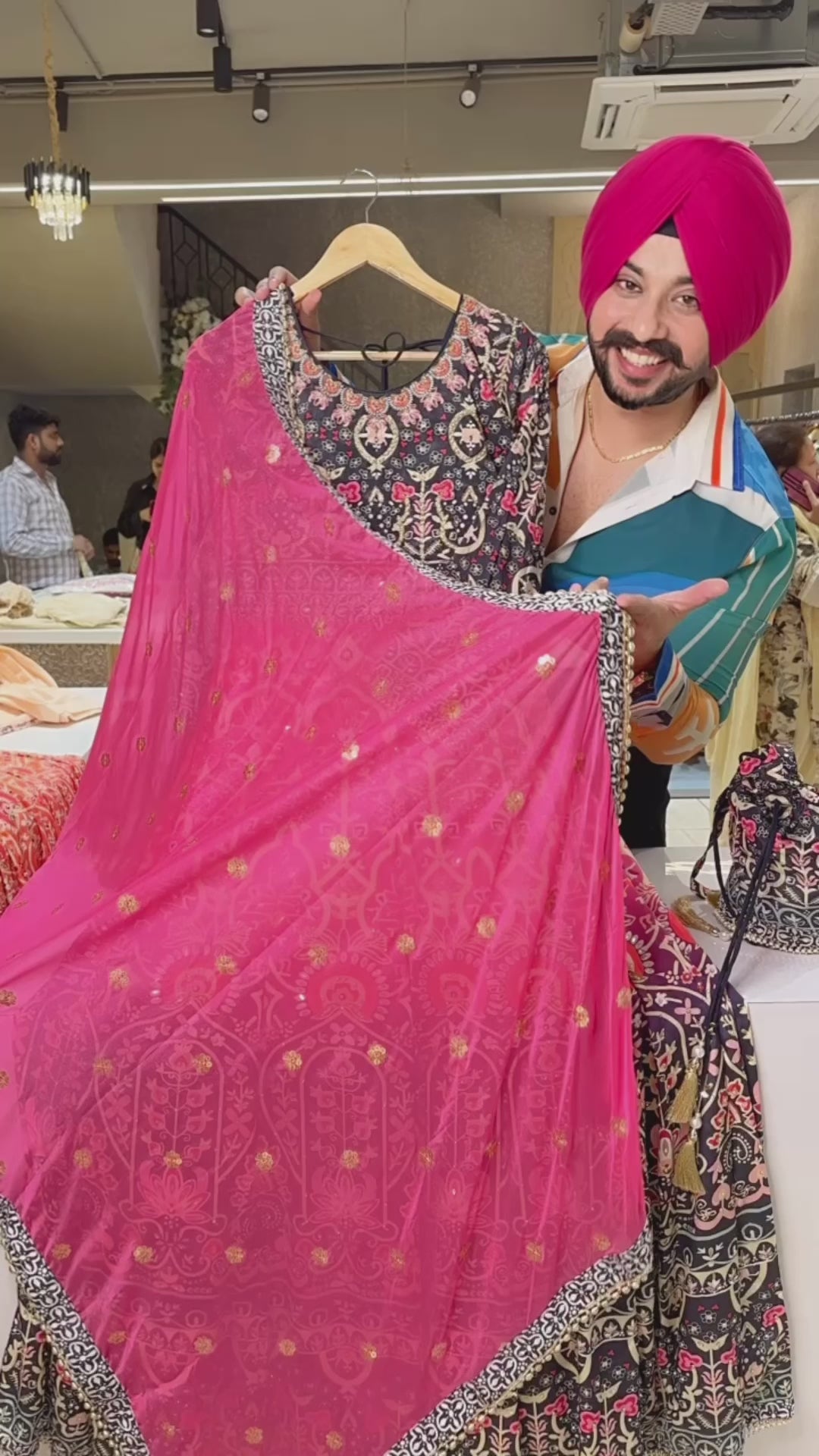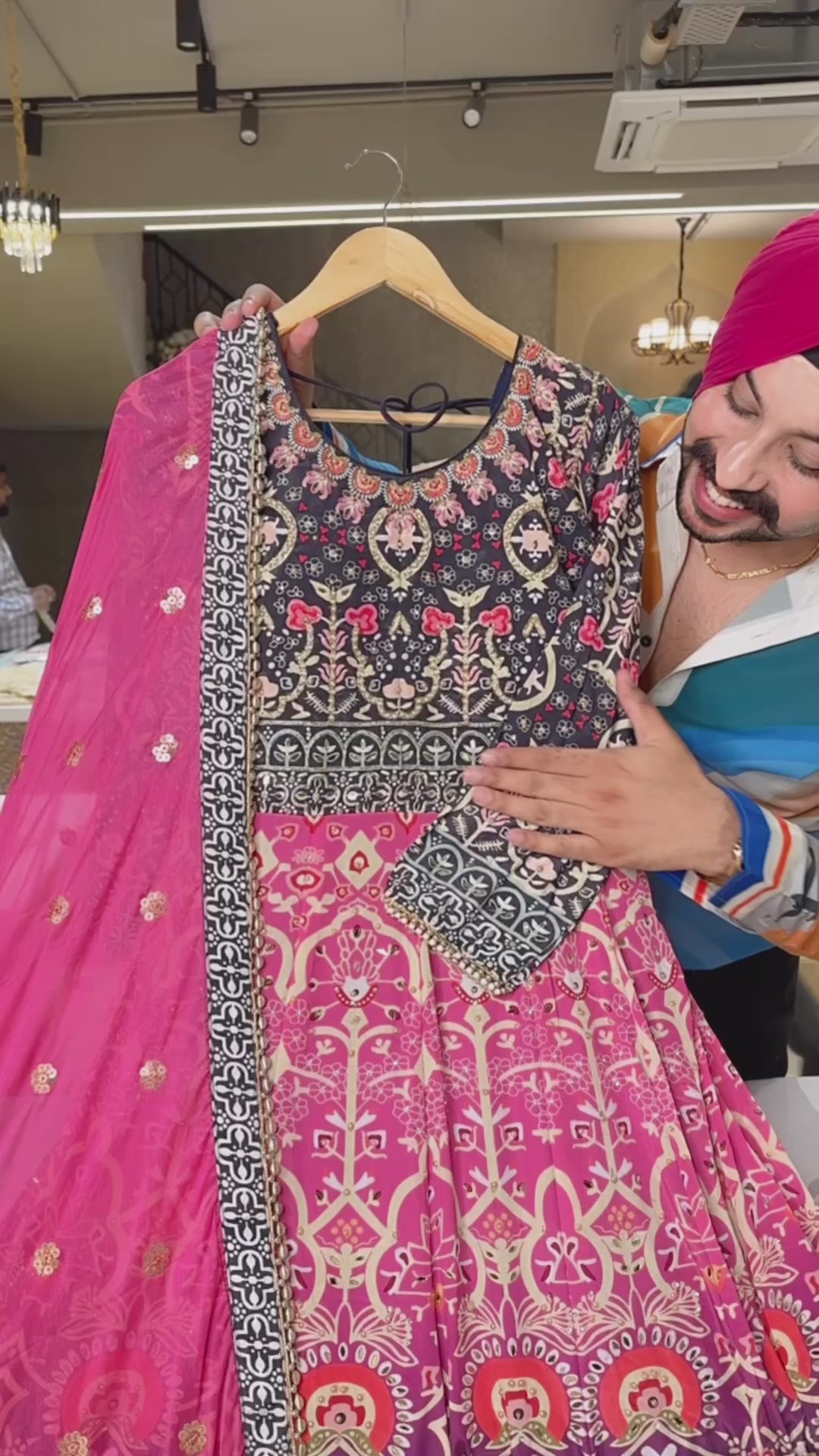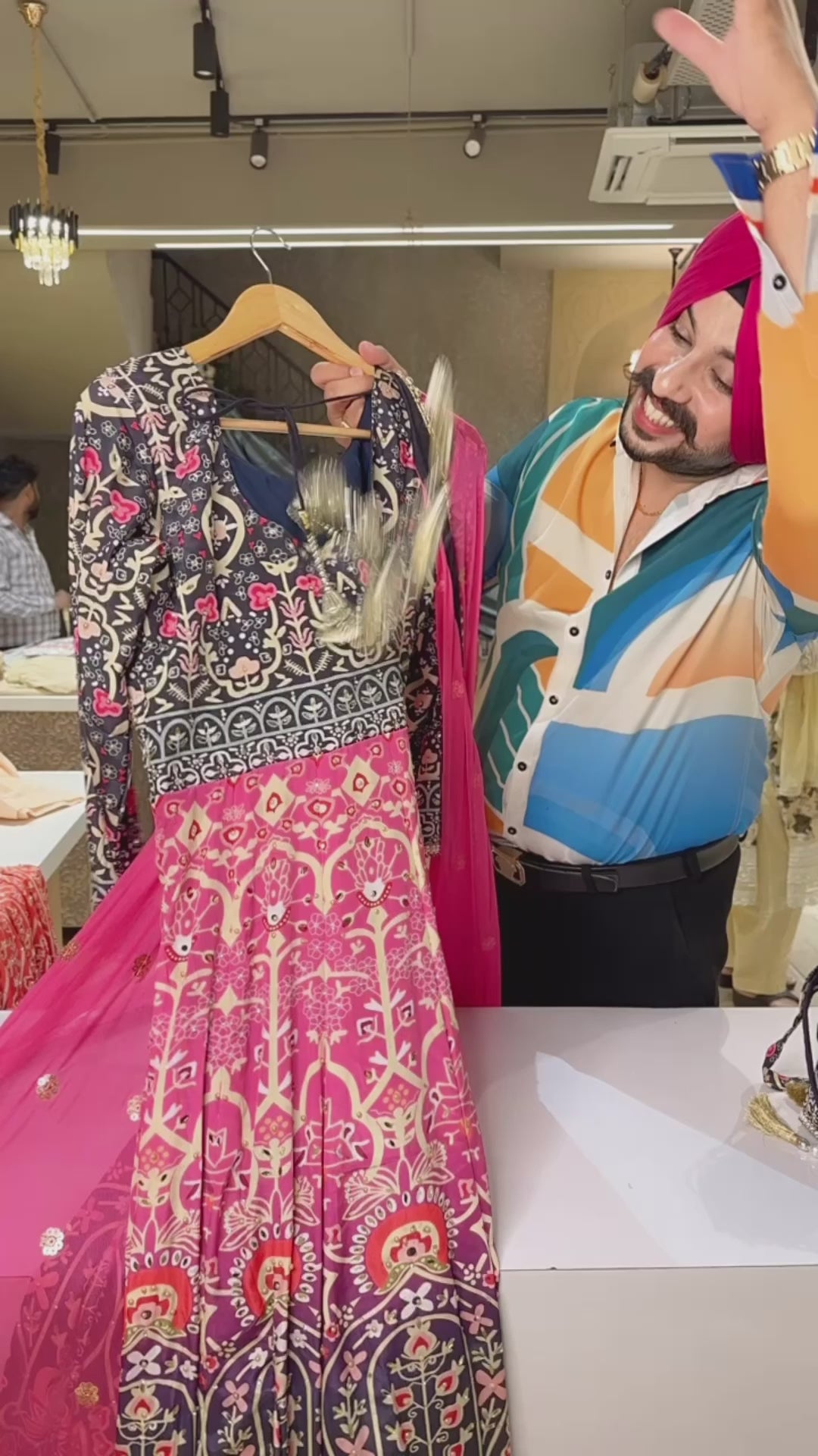 Blue & pink Crepe Heavy Hand embroidered & mirror Pasting Anarkali Gown with Cute Potli
