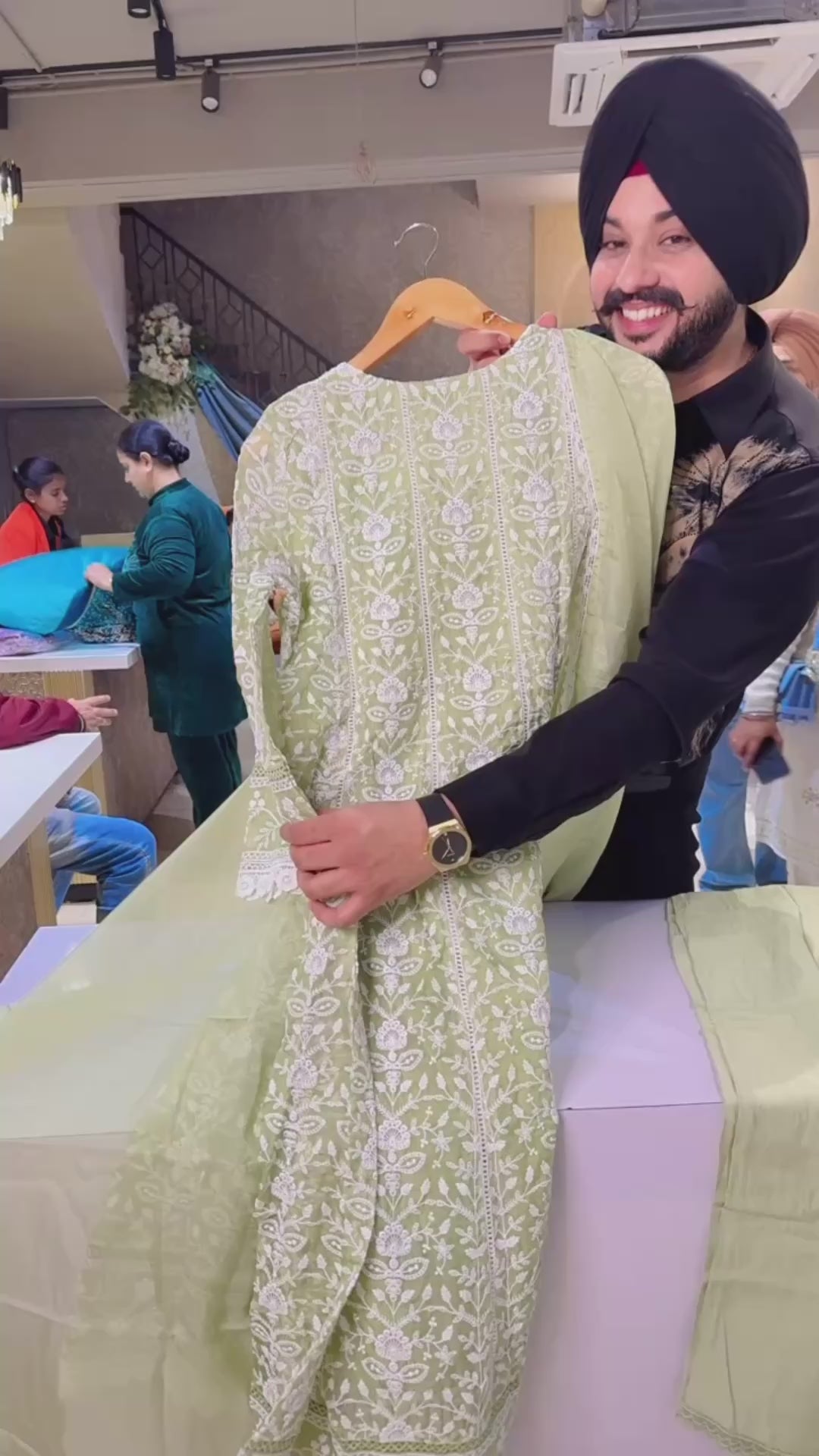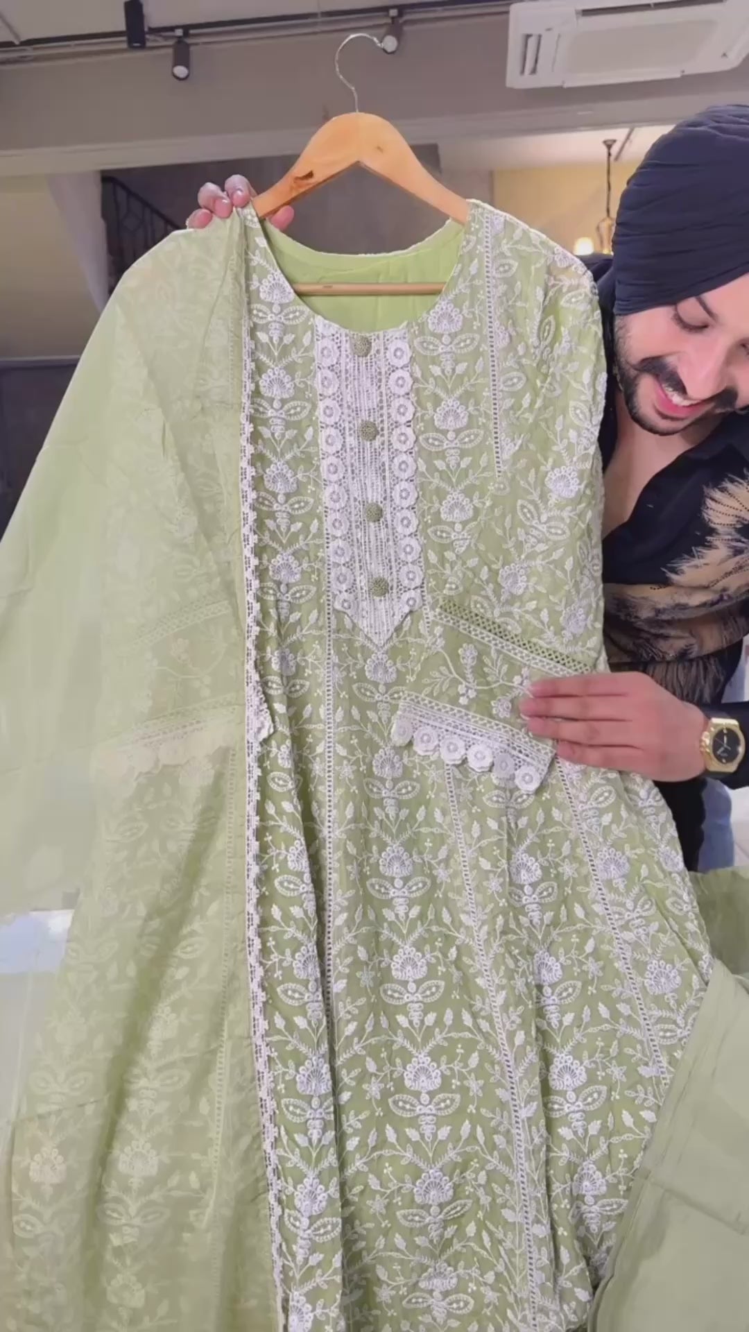Light Green Soft Organza Fully embroidered Royal Anarkali suit with beautiful Duppata