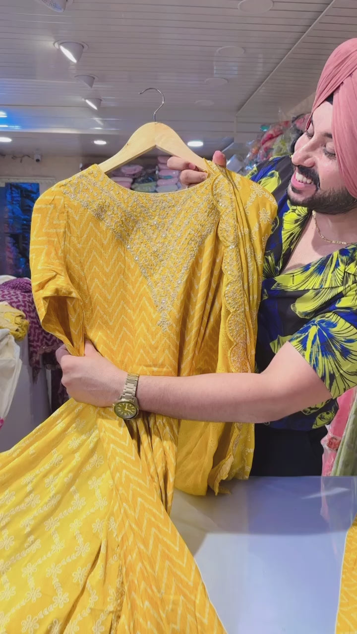 Yellow Rayon Heavy Embroidered Anarkali suit with Beautiful Duppata
