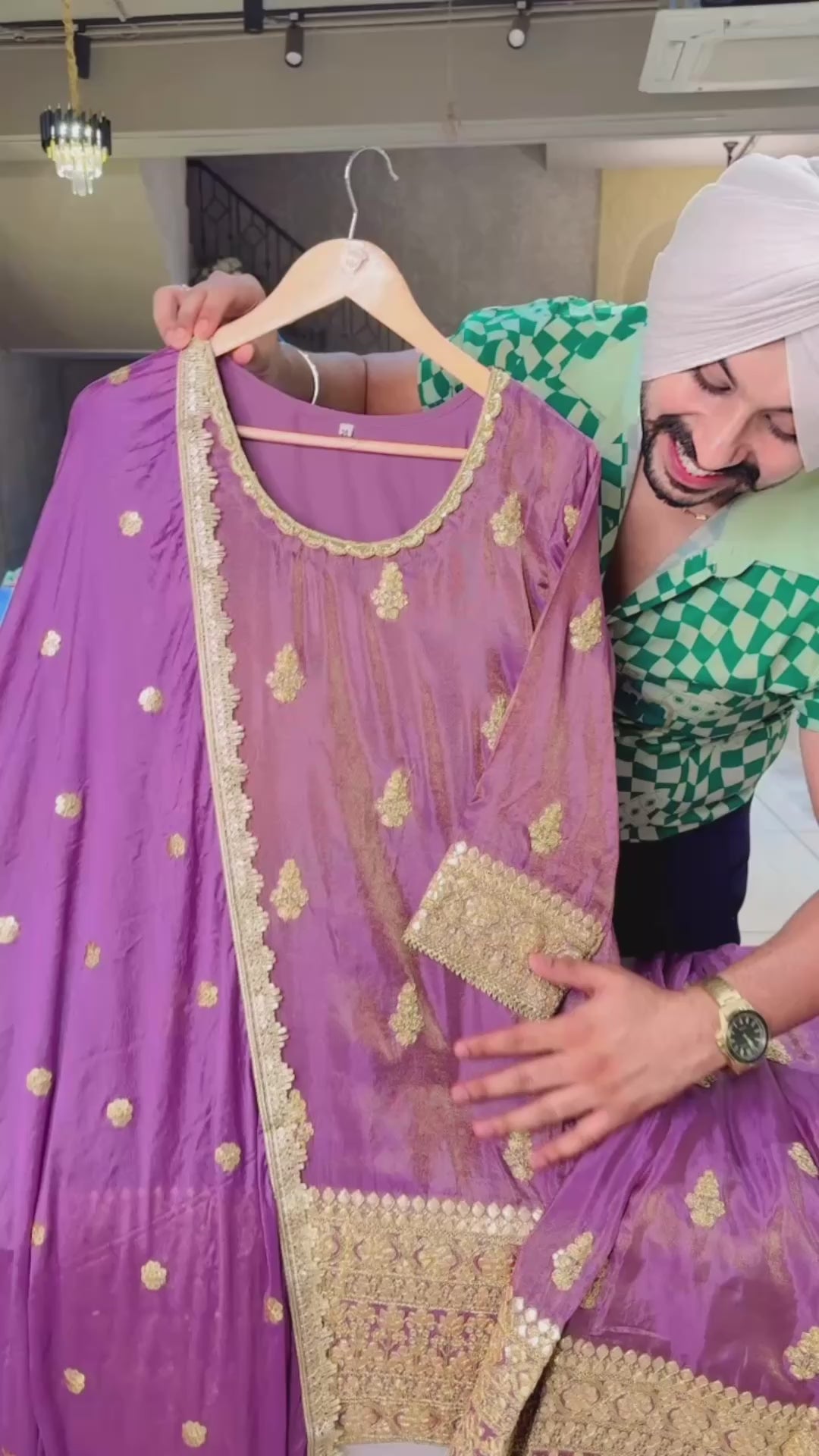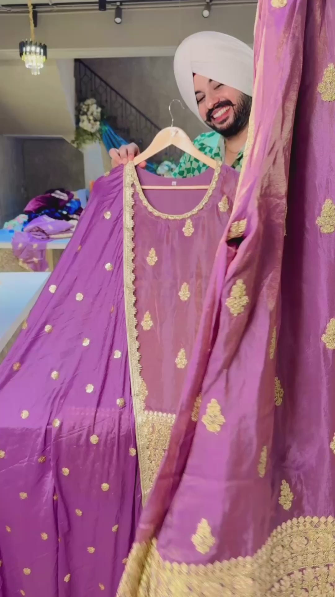 Mauve Shimmer Tissue Silk Heavy Embroidered Sharara Suit with beautiful Duppata