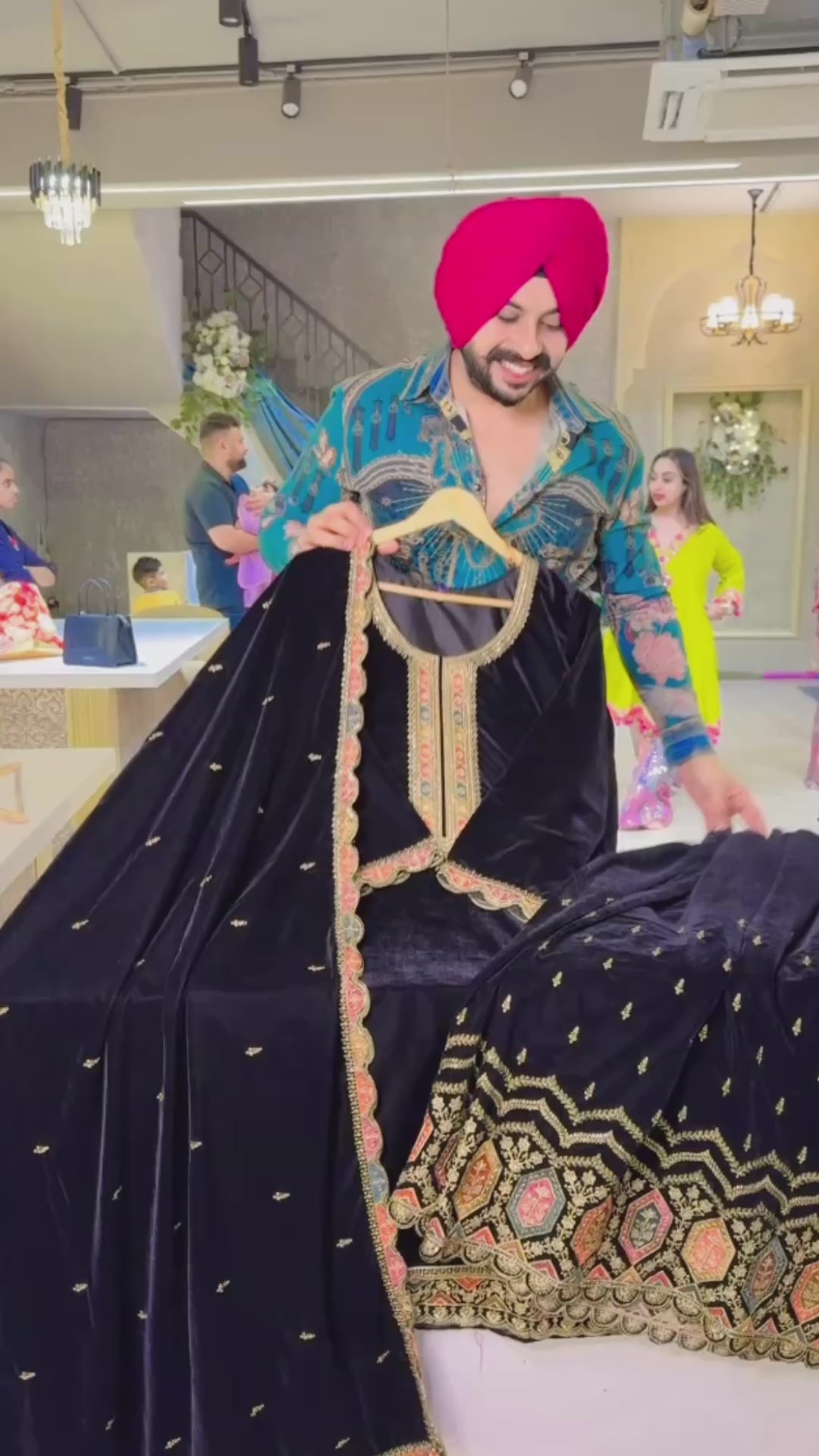 Black Velvet heavy embroidered Full Flair Sharara suit