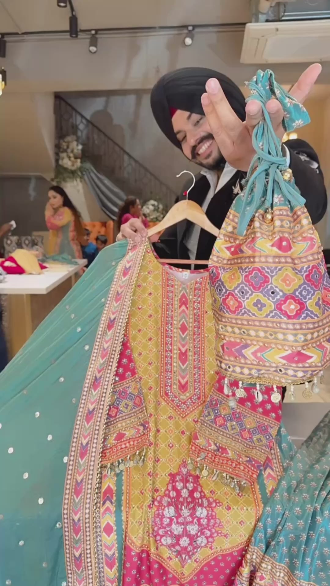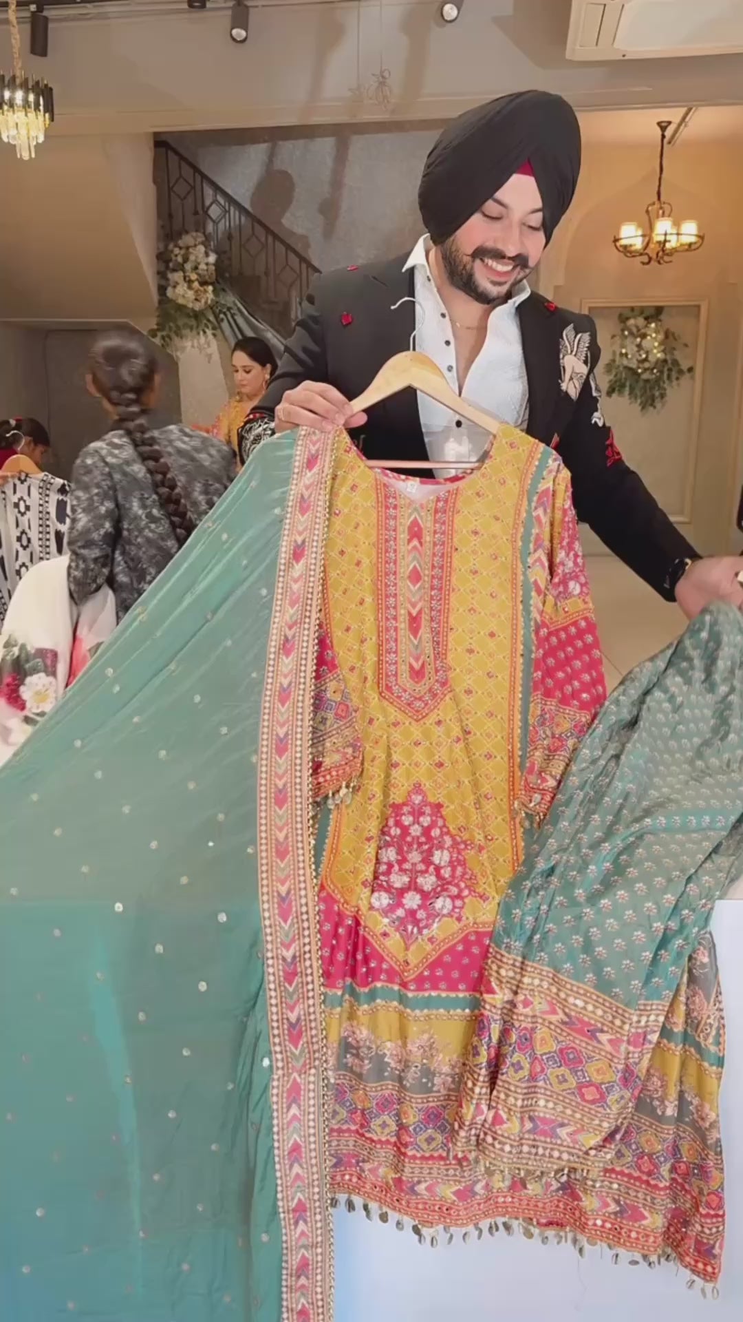 Yellow Velvet Heavy Swarovski & mirror pasting Pakistani Aline Suit with Cute Potli & chinon Heavy Duppata