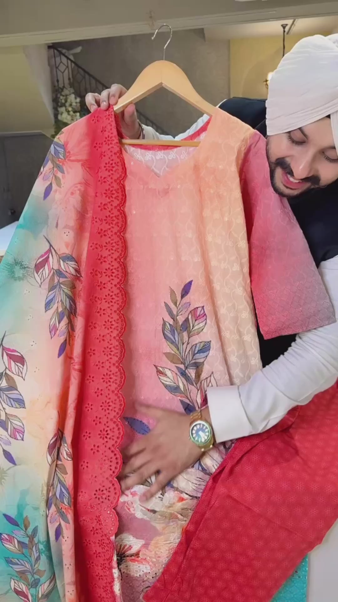 Vibrant Gajri & Multicolored Pure cotton Self embroidered & Sequins Work Straight Suit with Shifi Duppata