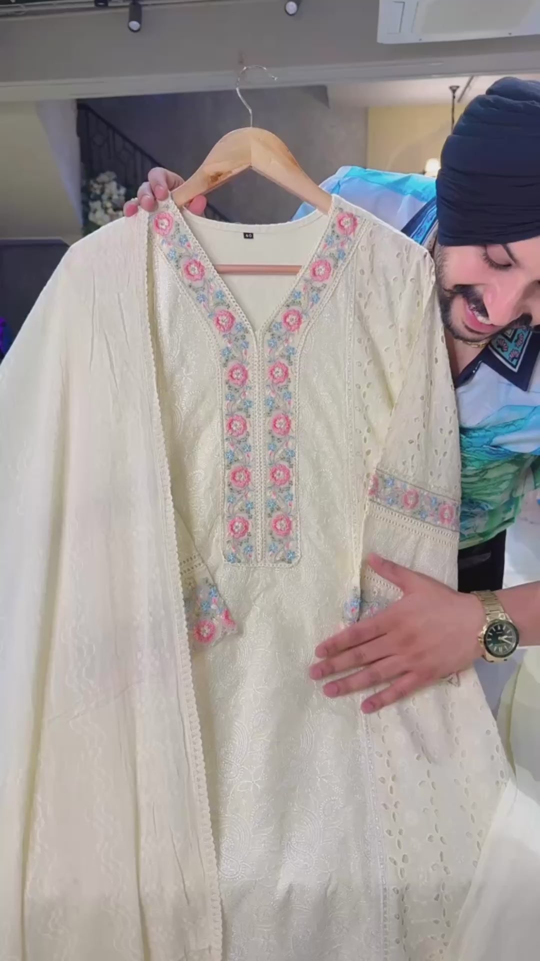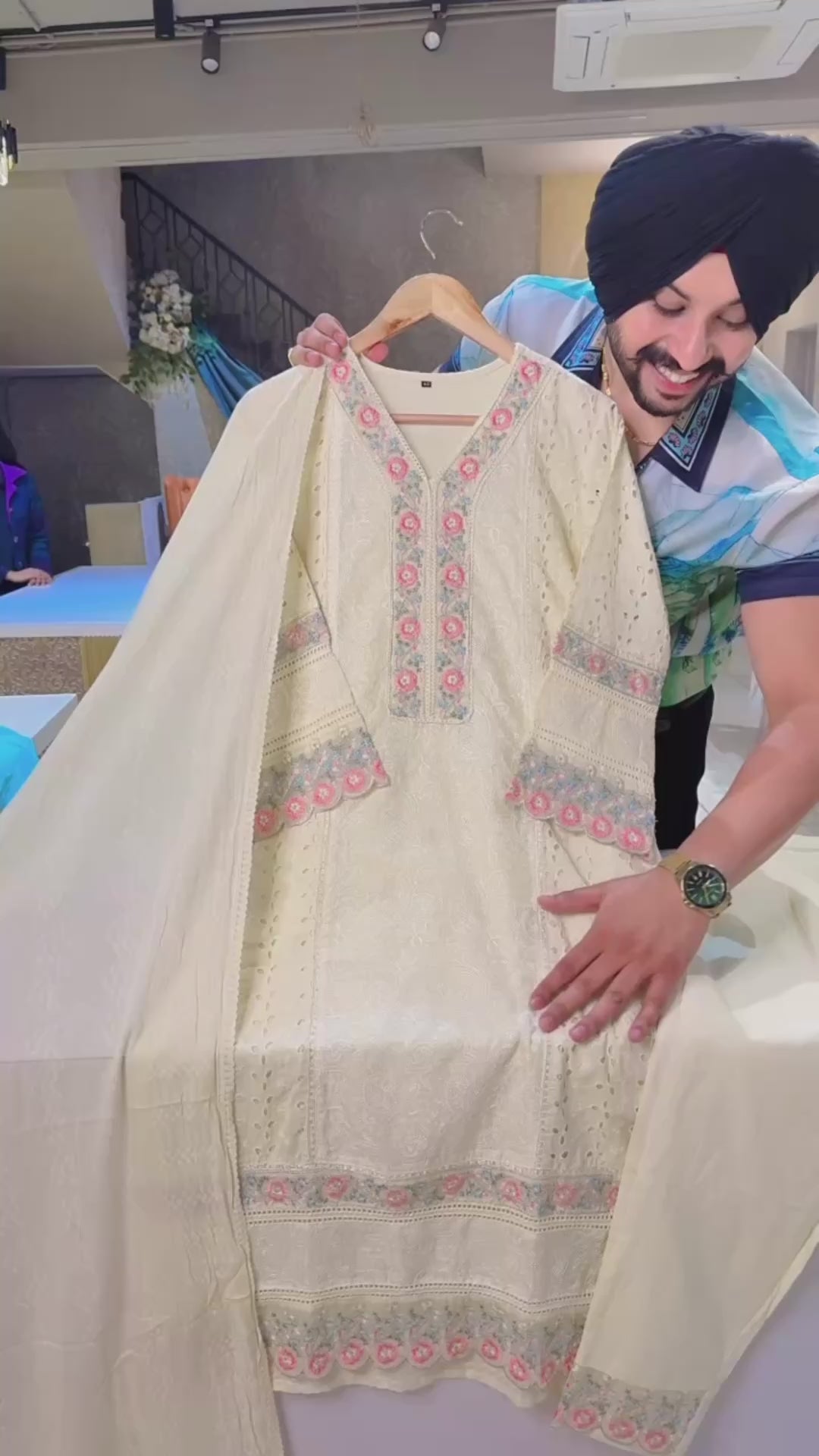 Off White Pure Cotton Embroidered & Shifli Work Pakistani suits