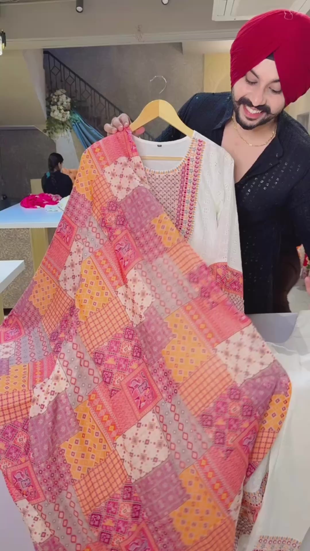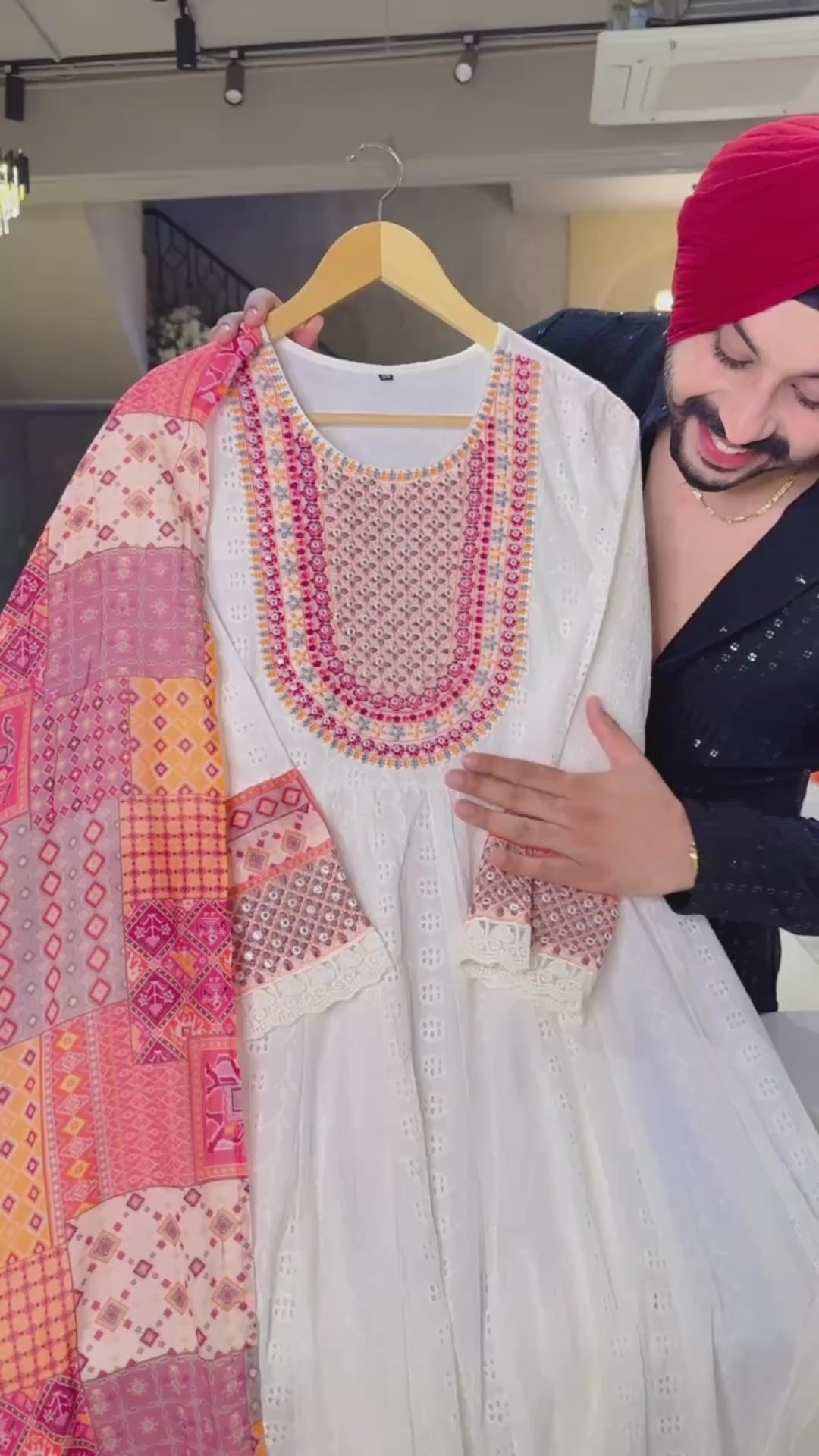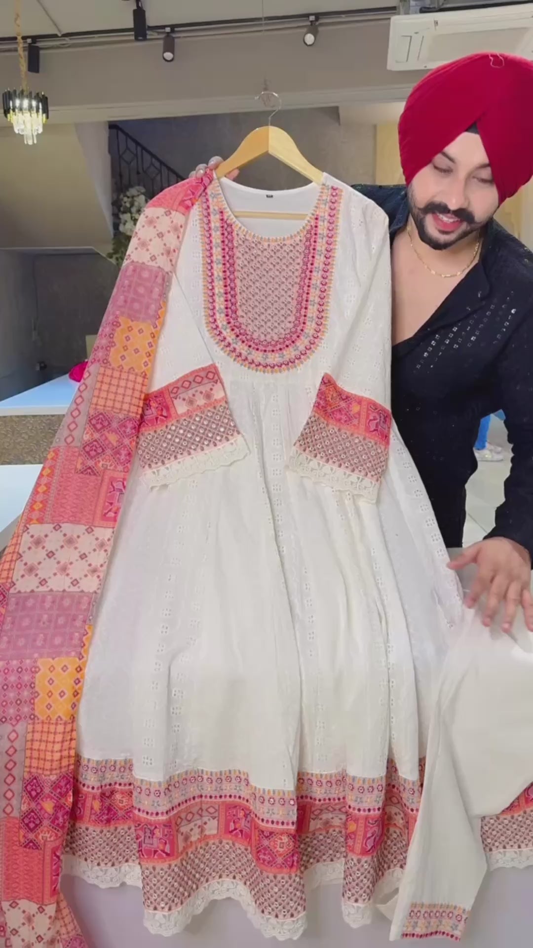 Moon White & Multicolored pure Cotton Heavy Embroidered & Shifli Work Full Flair Summerish Anarkali Suit with Beautiful printed Duppata