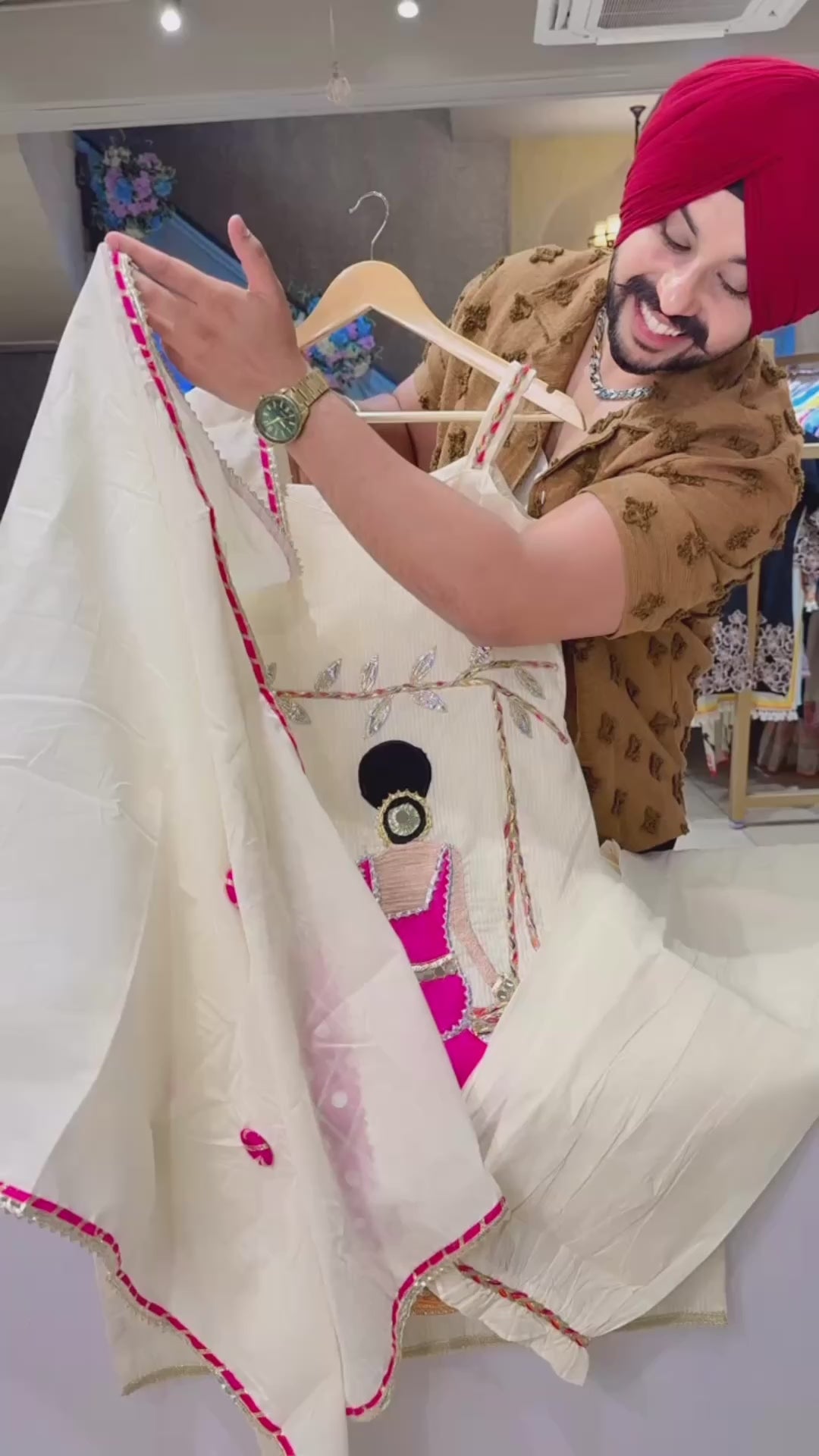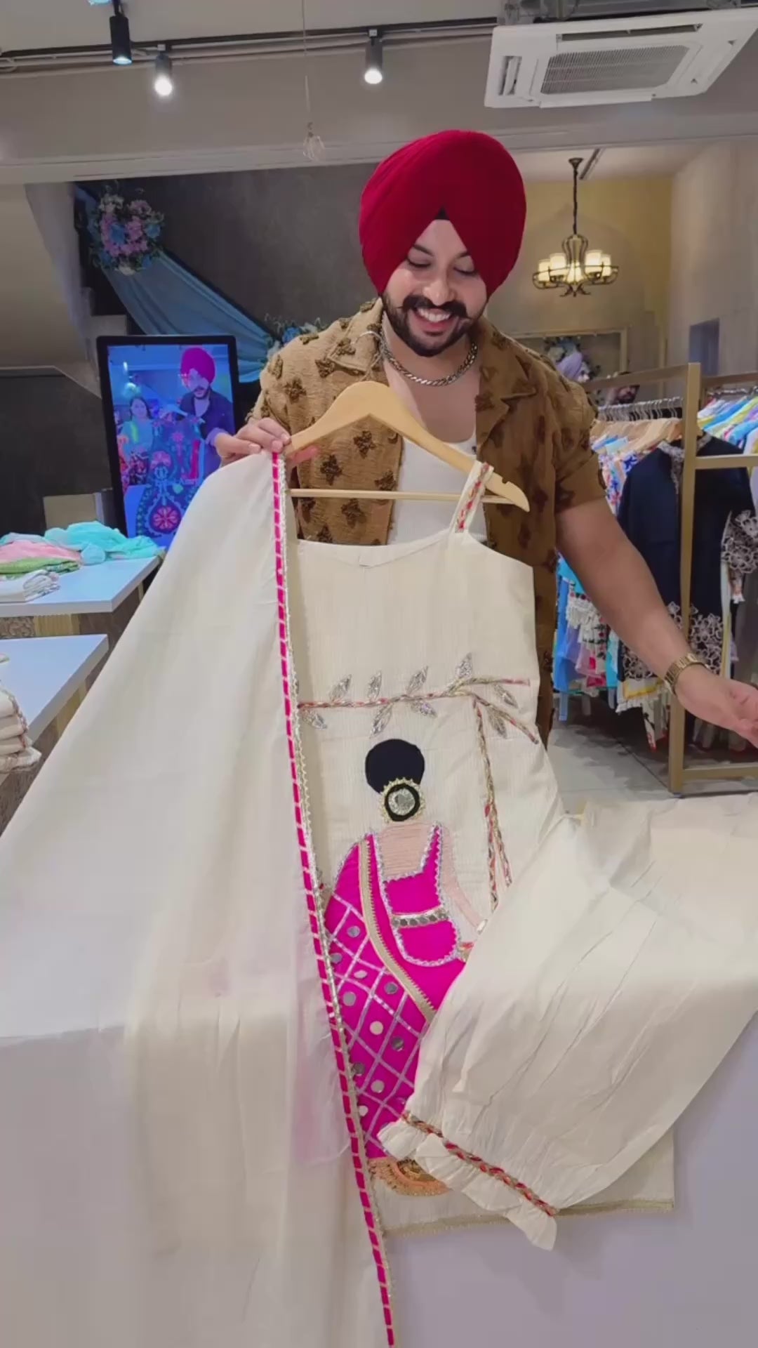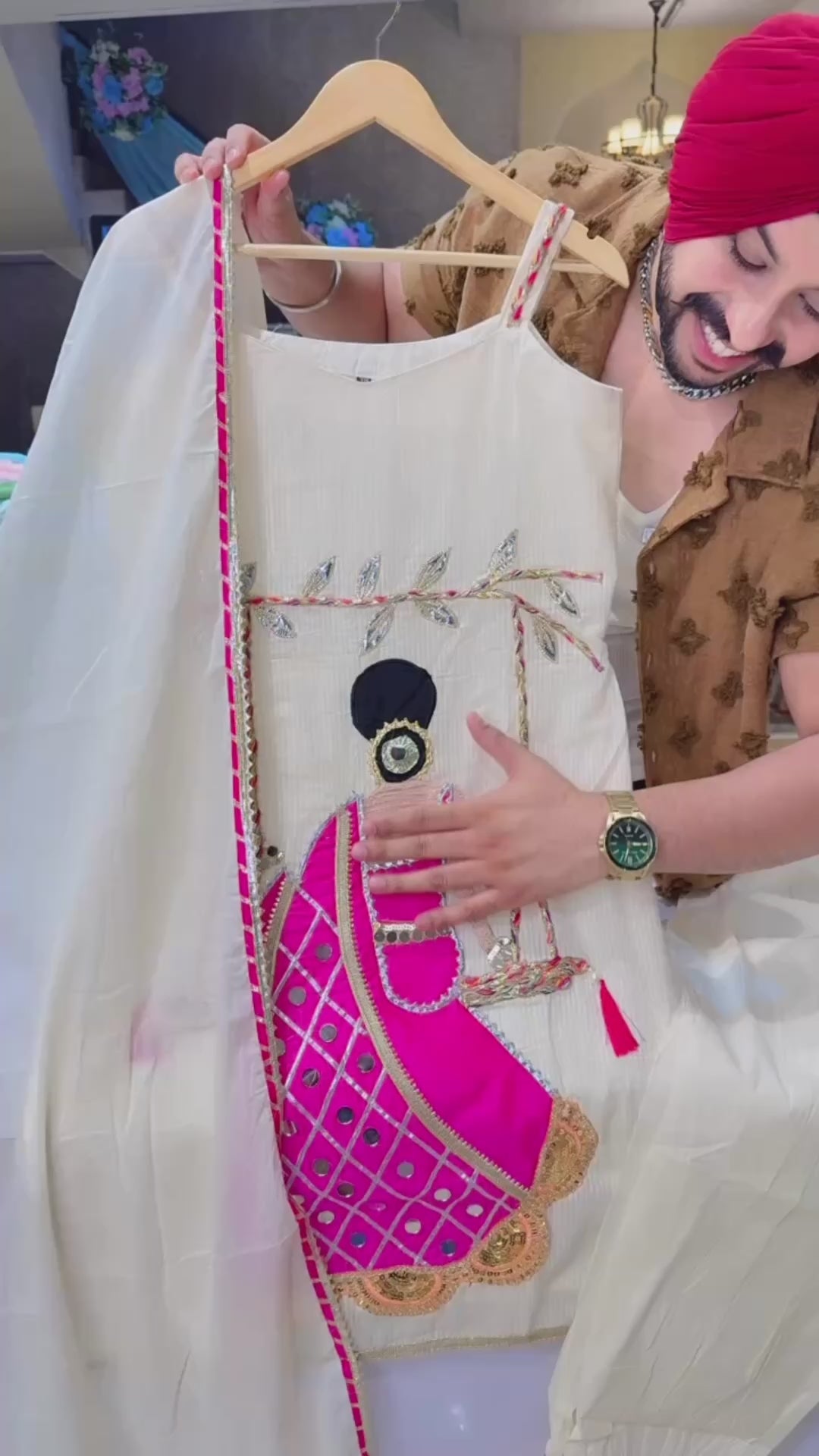 Off white Strap sleeves Kora Cotton Designer Doll Embroidered Pathani suit