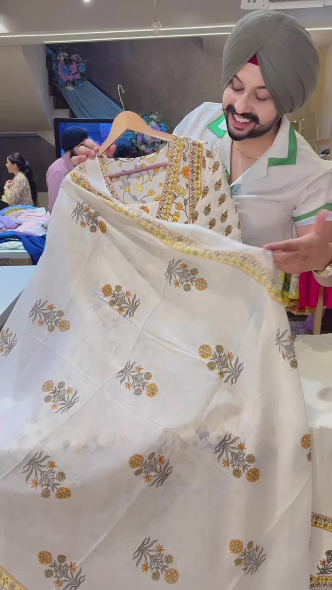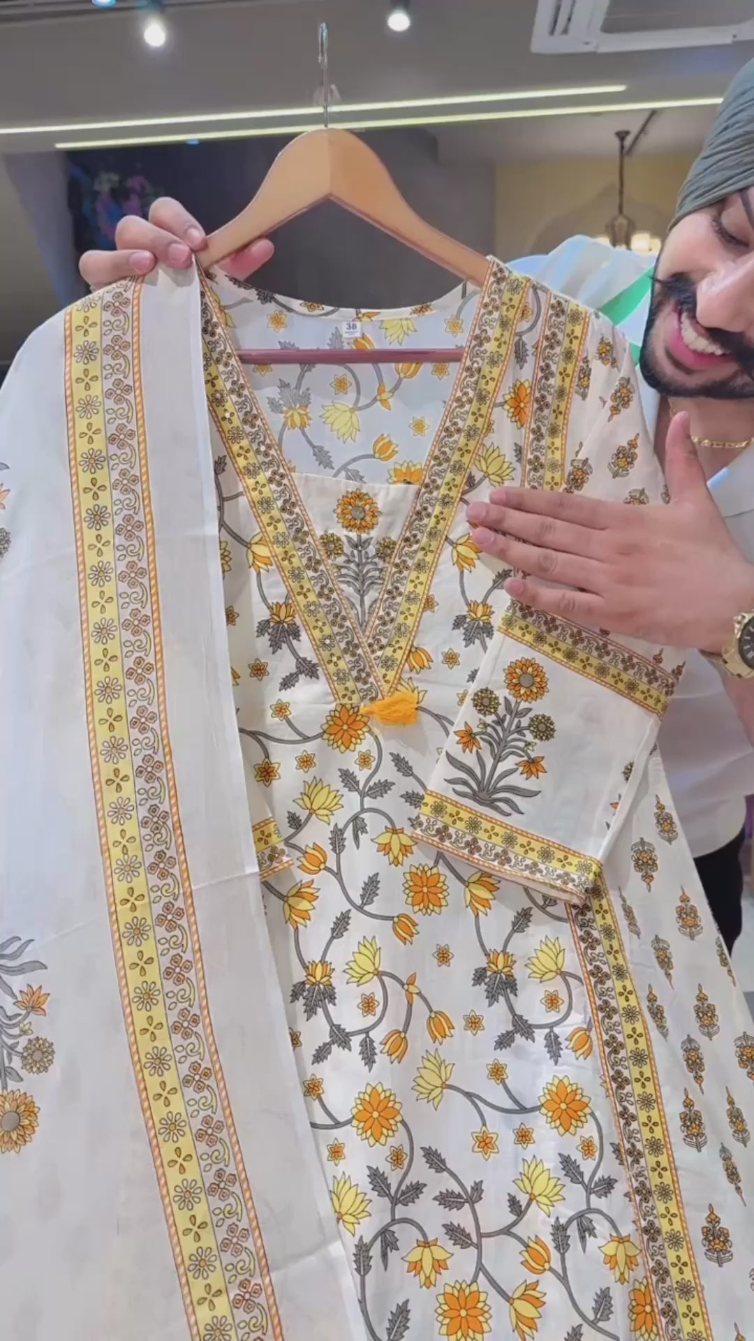 Off white & yellow pure Cotton a-line Plazo suit with Sleek Sequins Work on neck