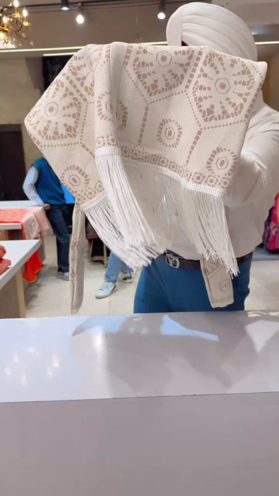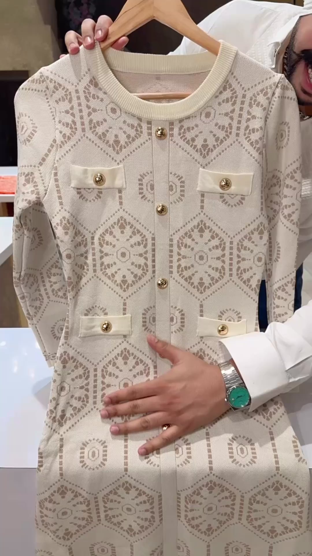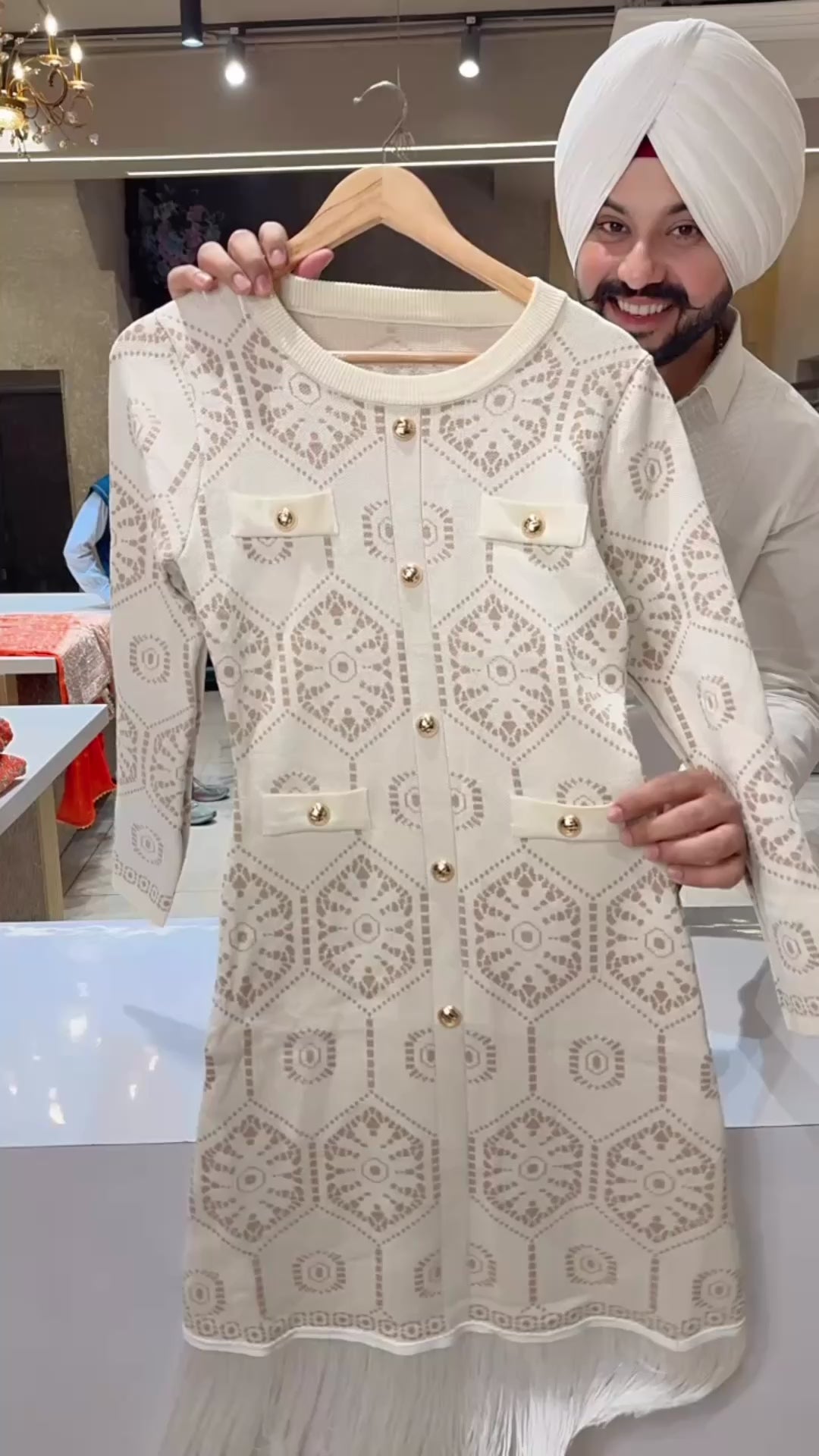 Off white Nitting Woolen Knee length Girlish Dress with Frill on Border