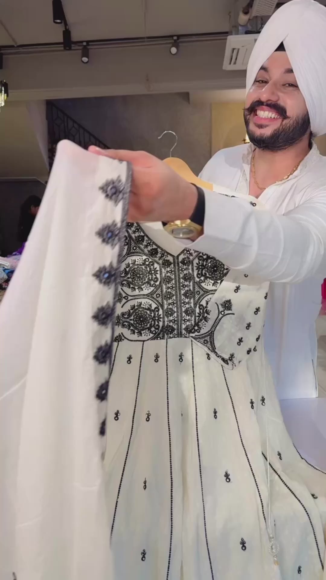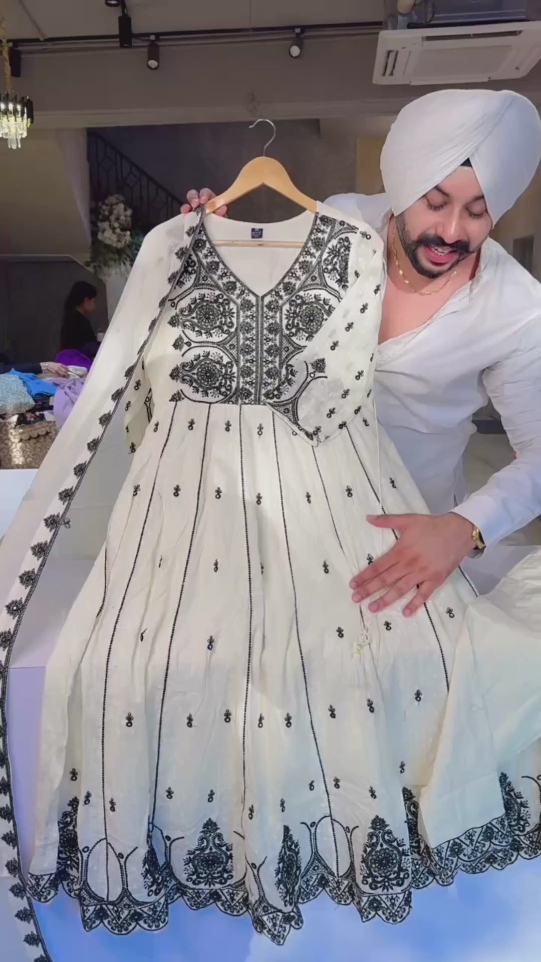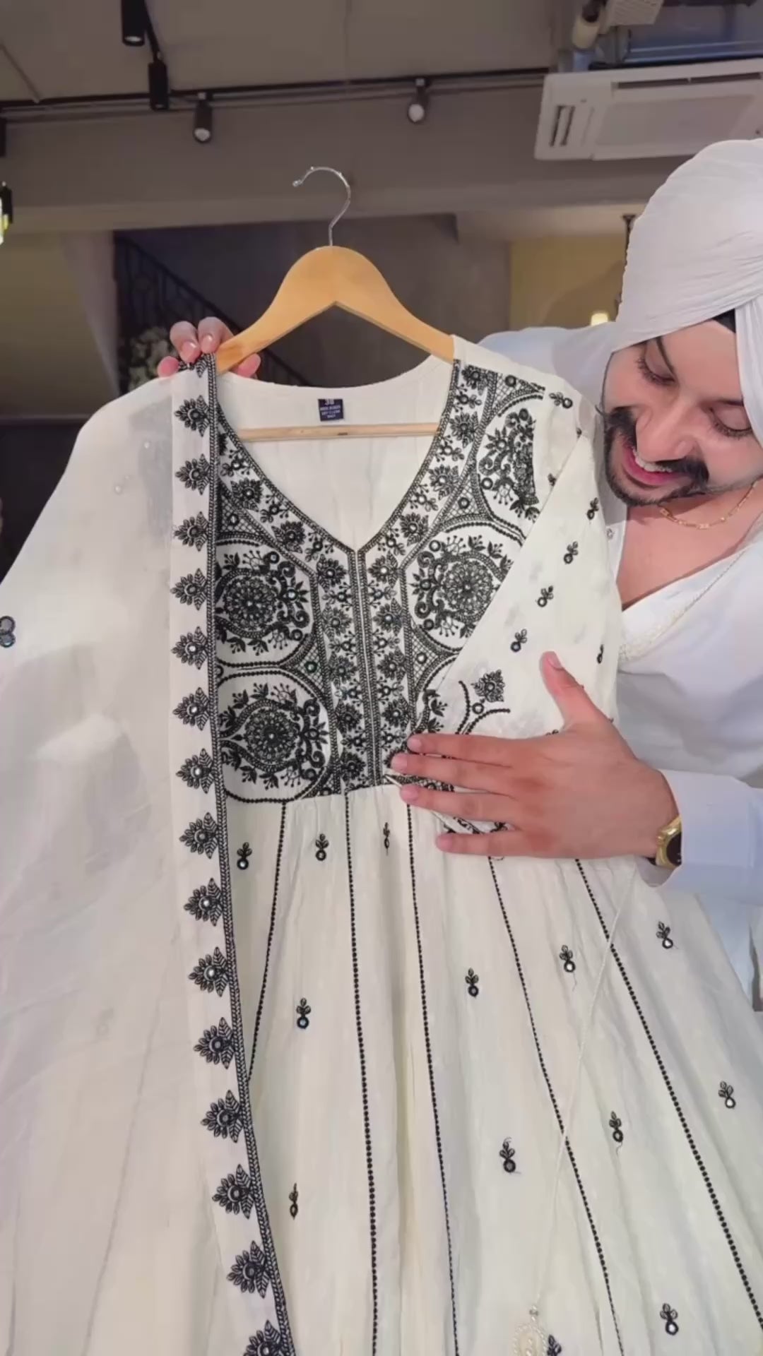 Off white & Black Pure Cotton Heavy embroidered Anarkali Suit with Beautiful Embroidered Duppata