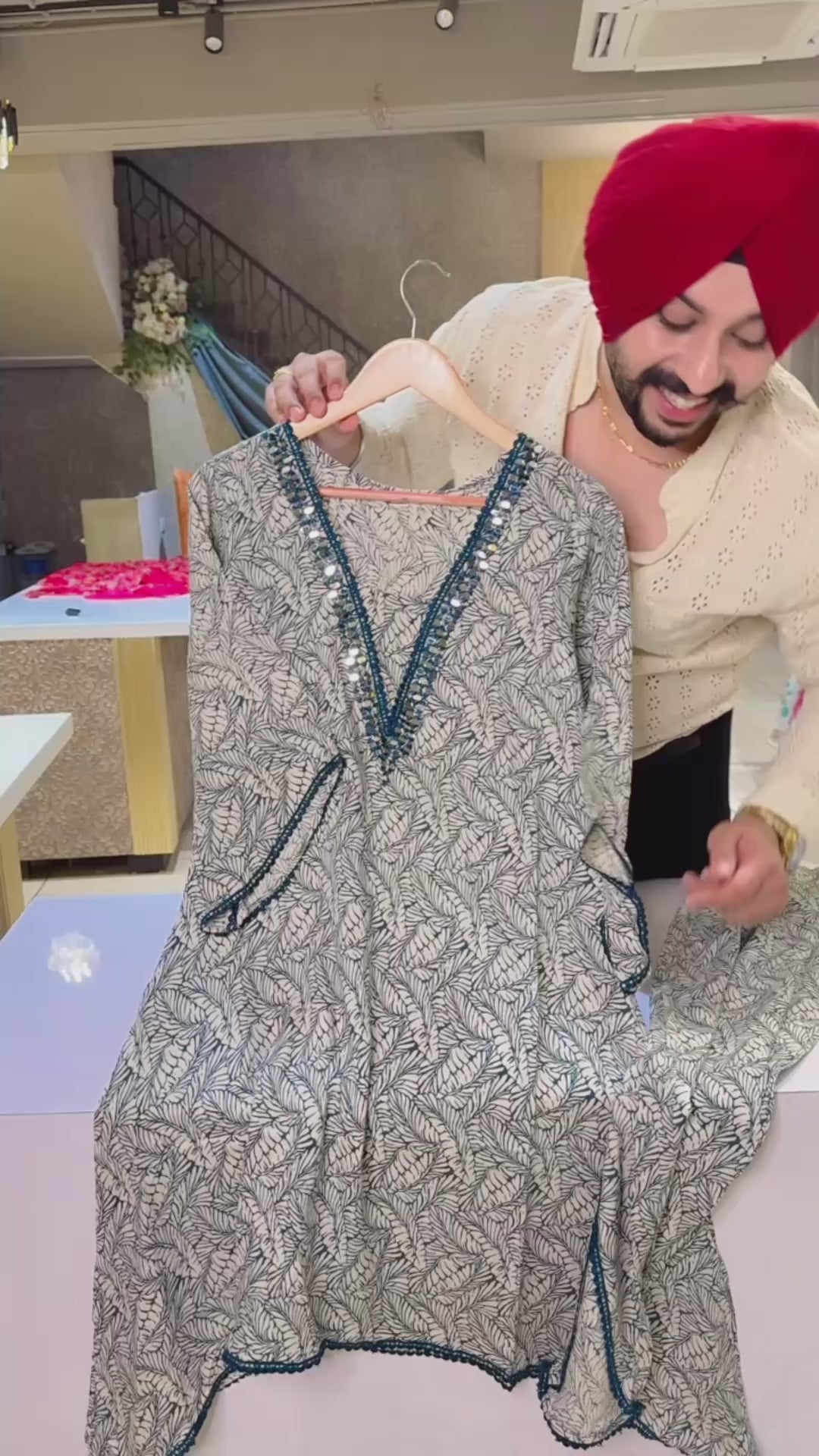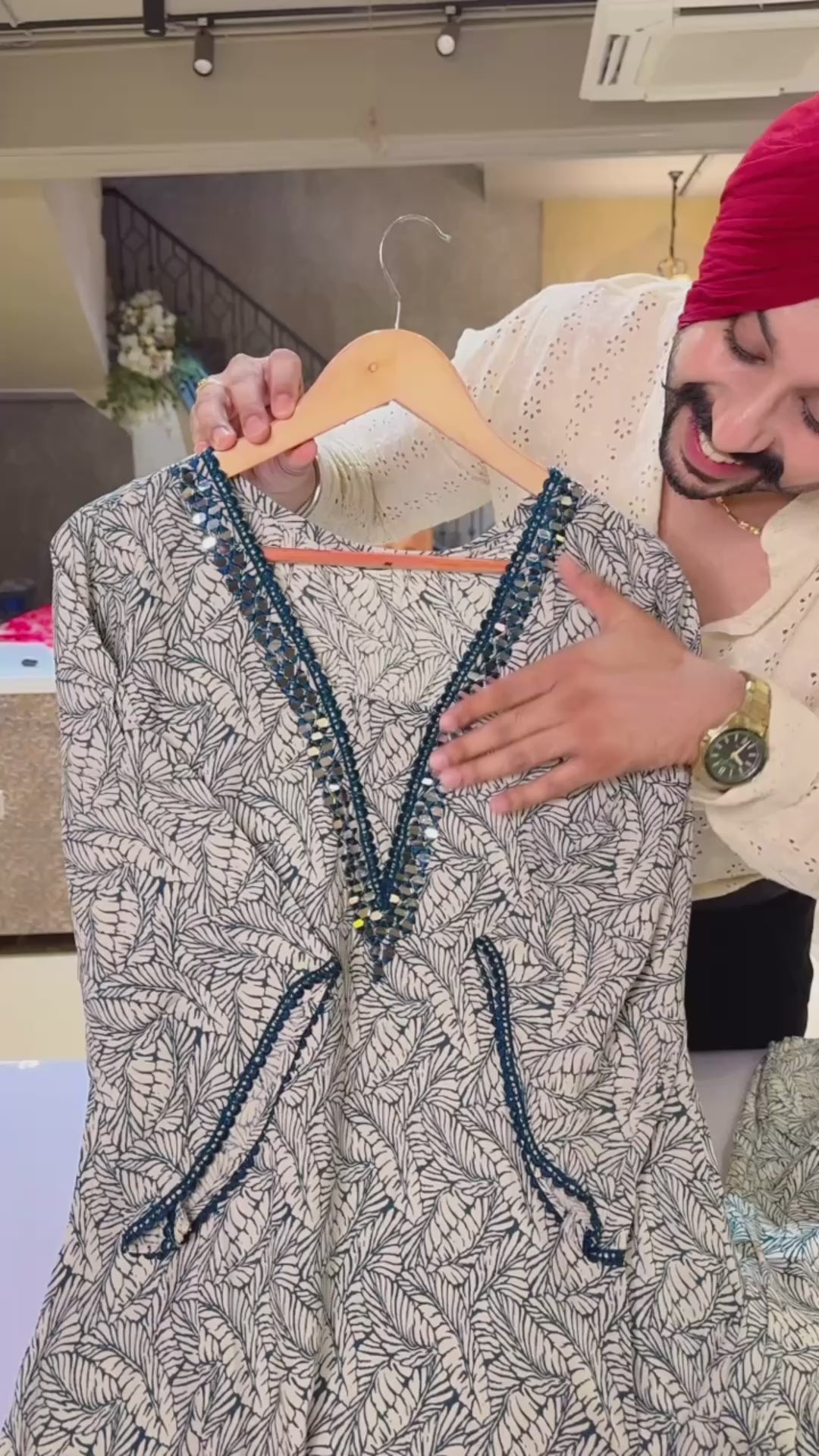 White & peacock Rayon Mirror Work C-Cut Coord set with Styish Tulip pants