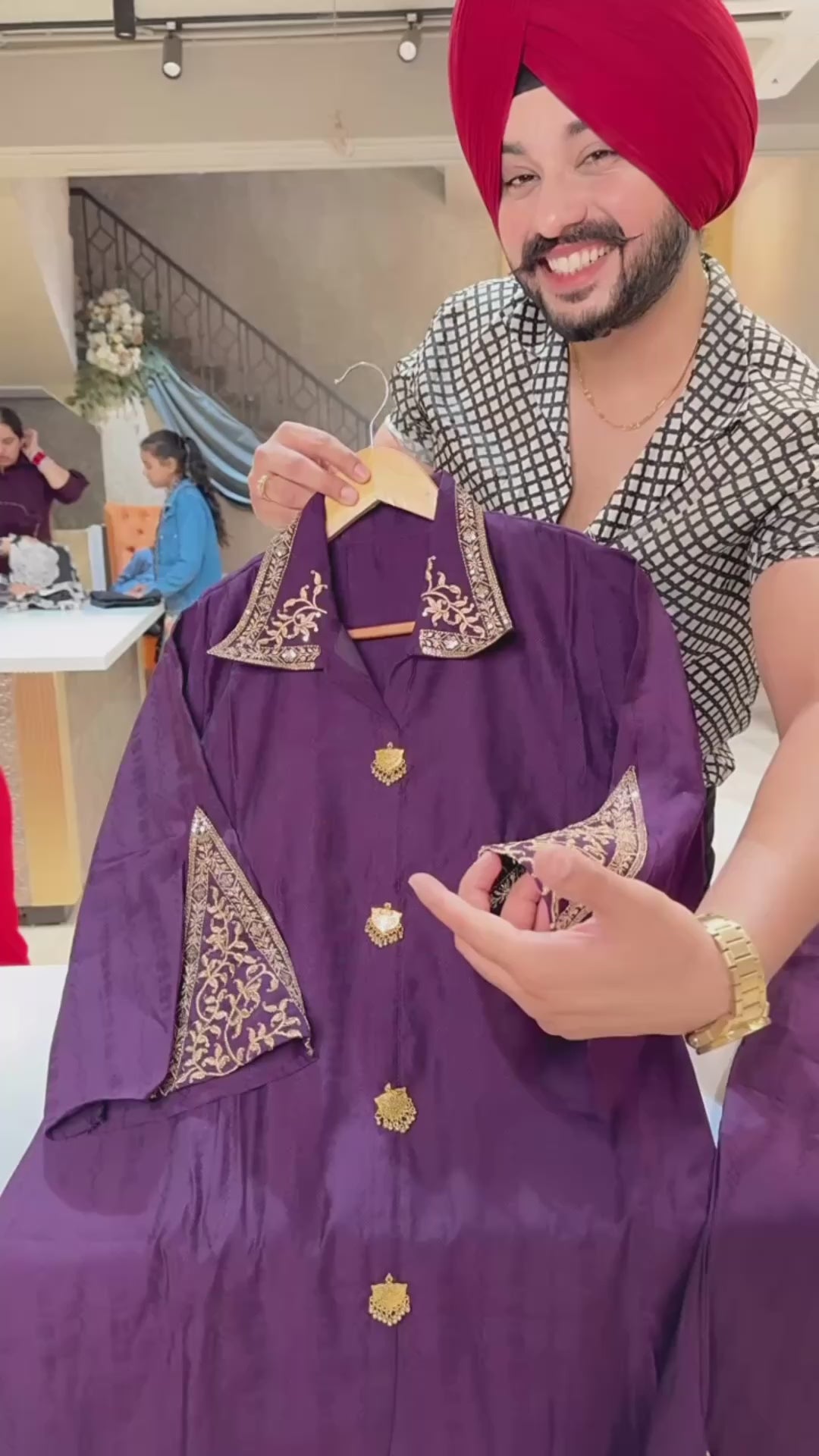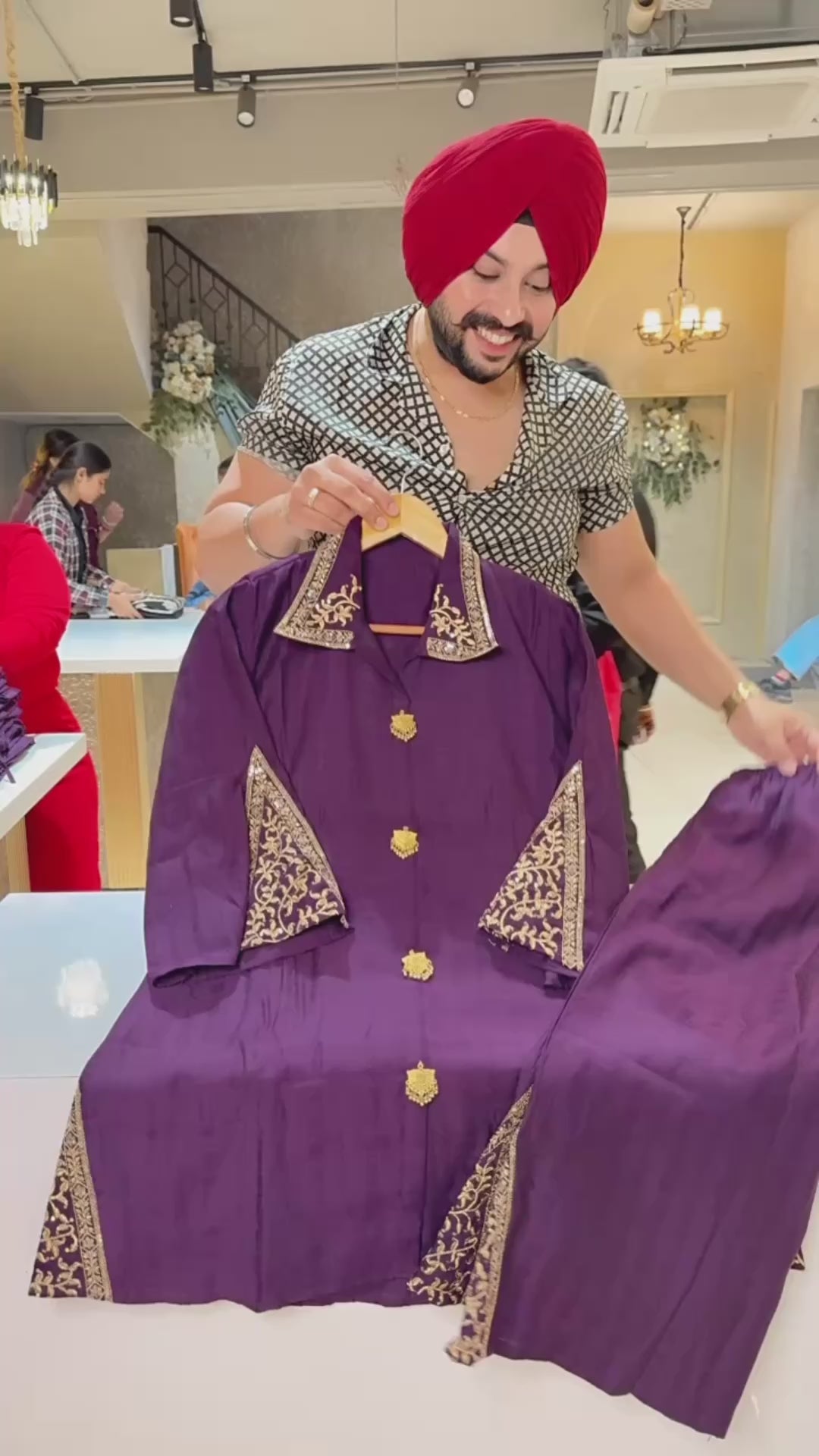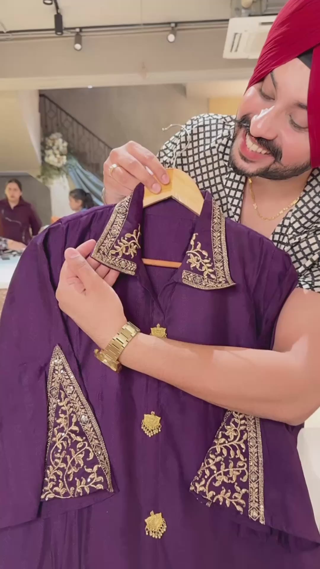 Wine Soft Silk Collar Neck Bell Bottom Coord set with Beautiful Embroidery work on it