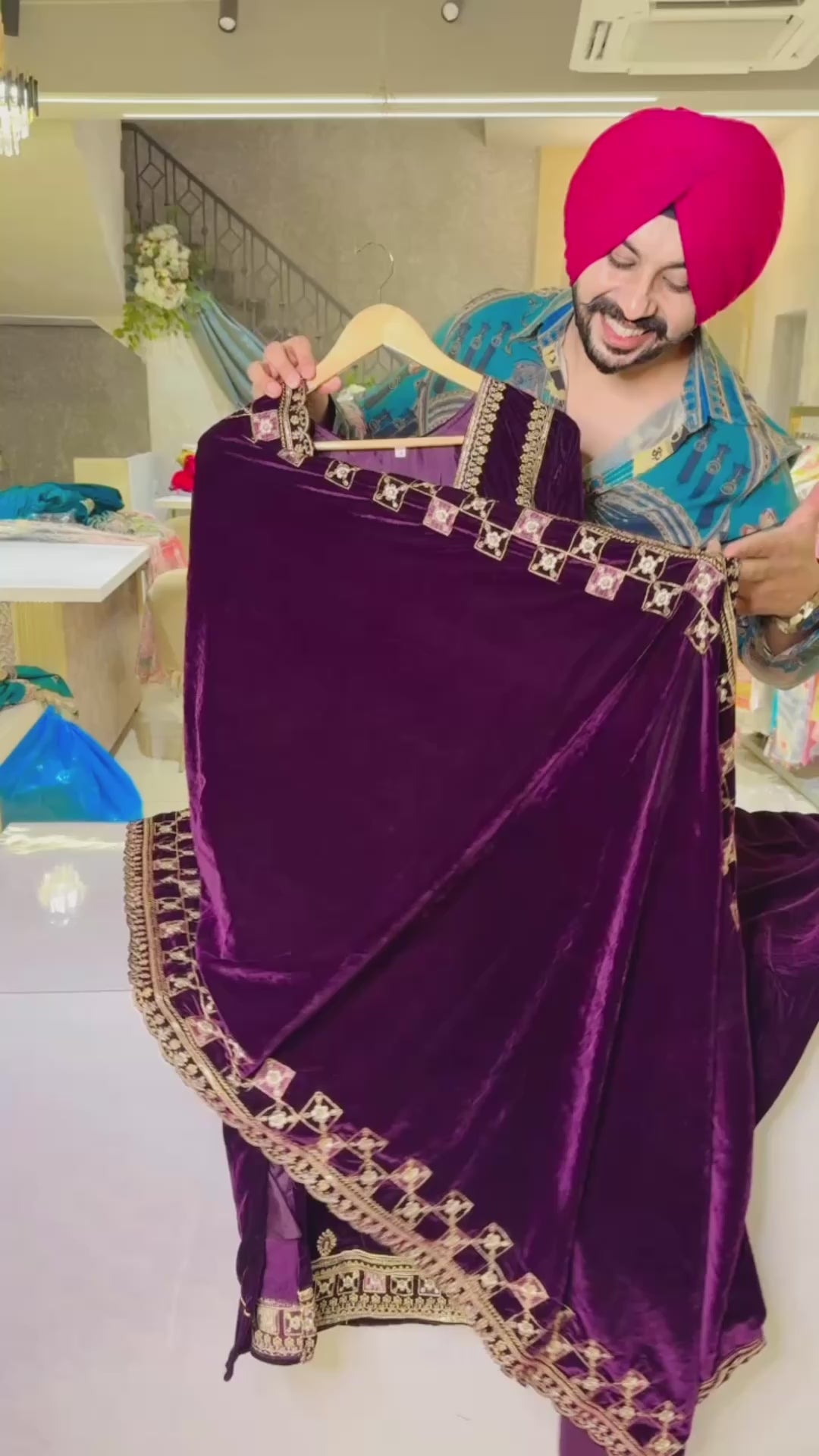 Wine square neck Velvet heavy embroidered Suit with beautiful Duppata