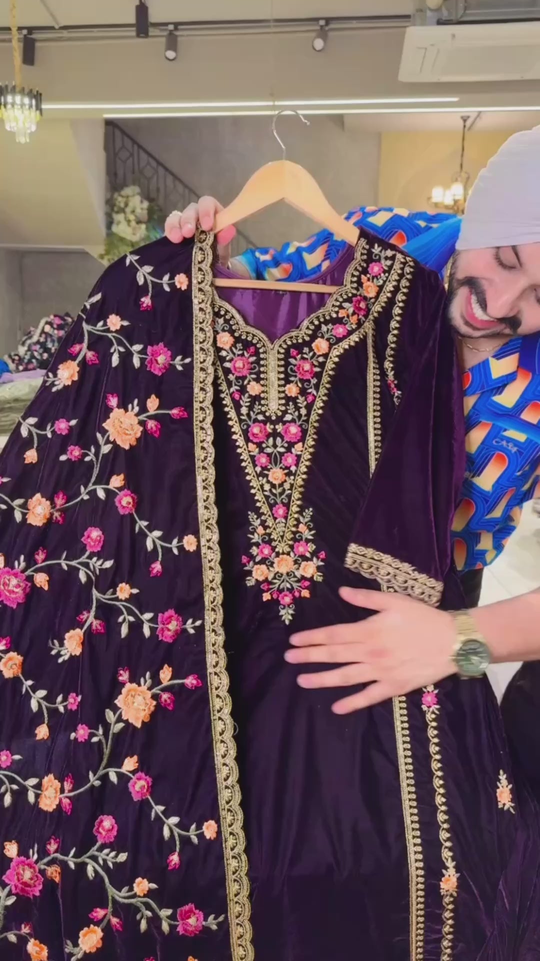 Wine premium Velvet suit with Heavy Embroidered Duppata