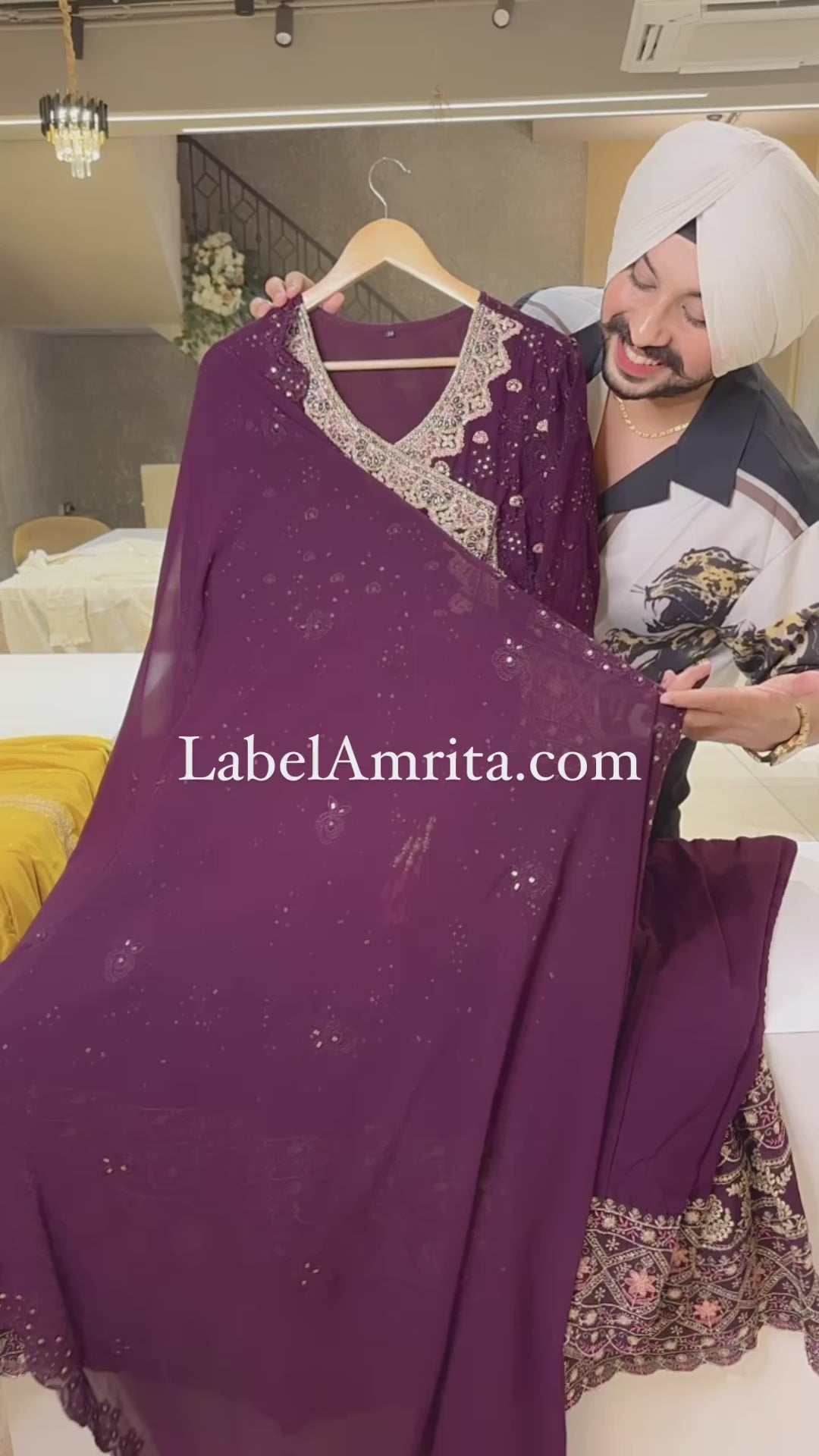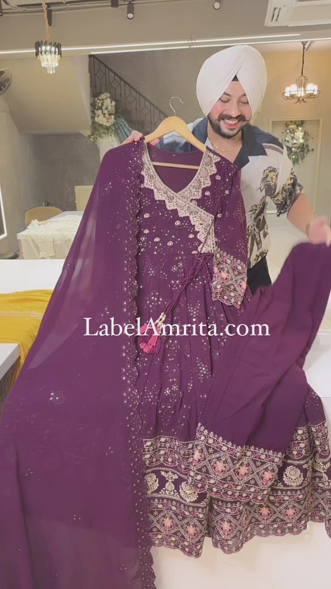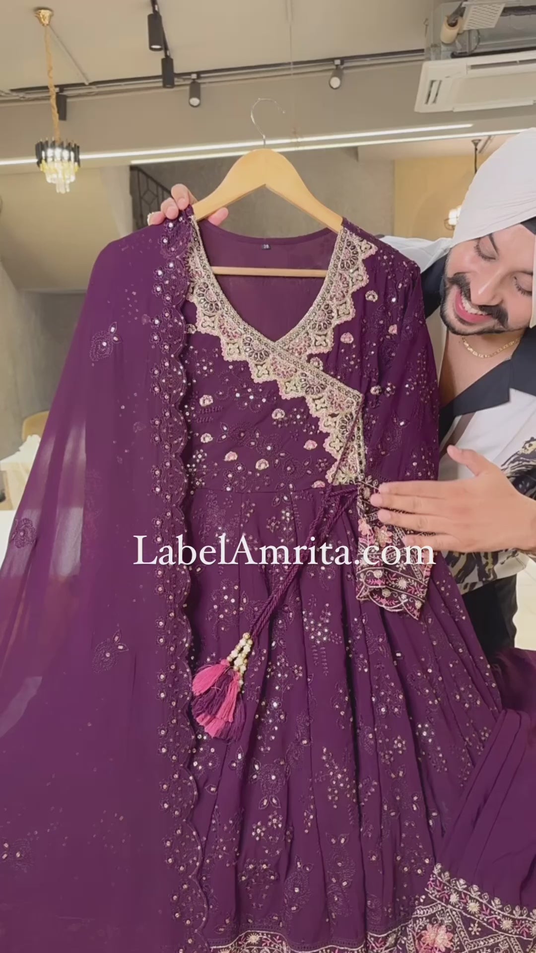Wine Georgette Angrakha Fully Embroidered Anarkali Suit with with Heavy Embroidery work on neck , border & pants