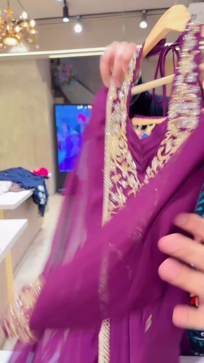 Wine Georgette Heavy Hand embroidered Designer Neck & Back Party wear Anarkali Gown