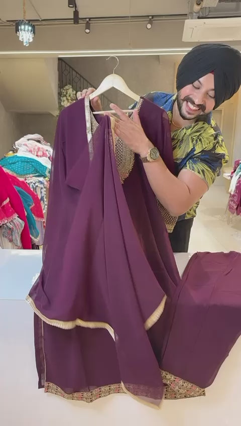 Wine Georgette Straight Suit with Beautiful Embroidery work