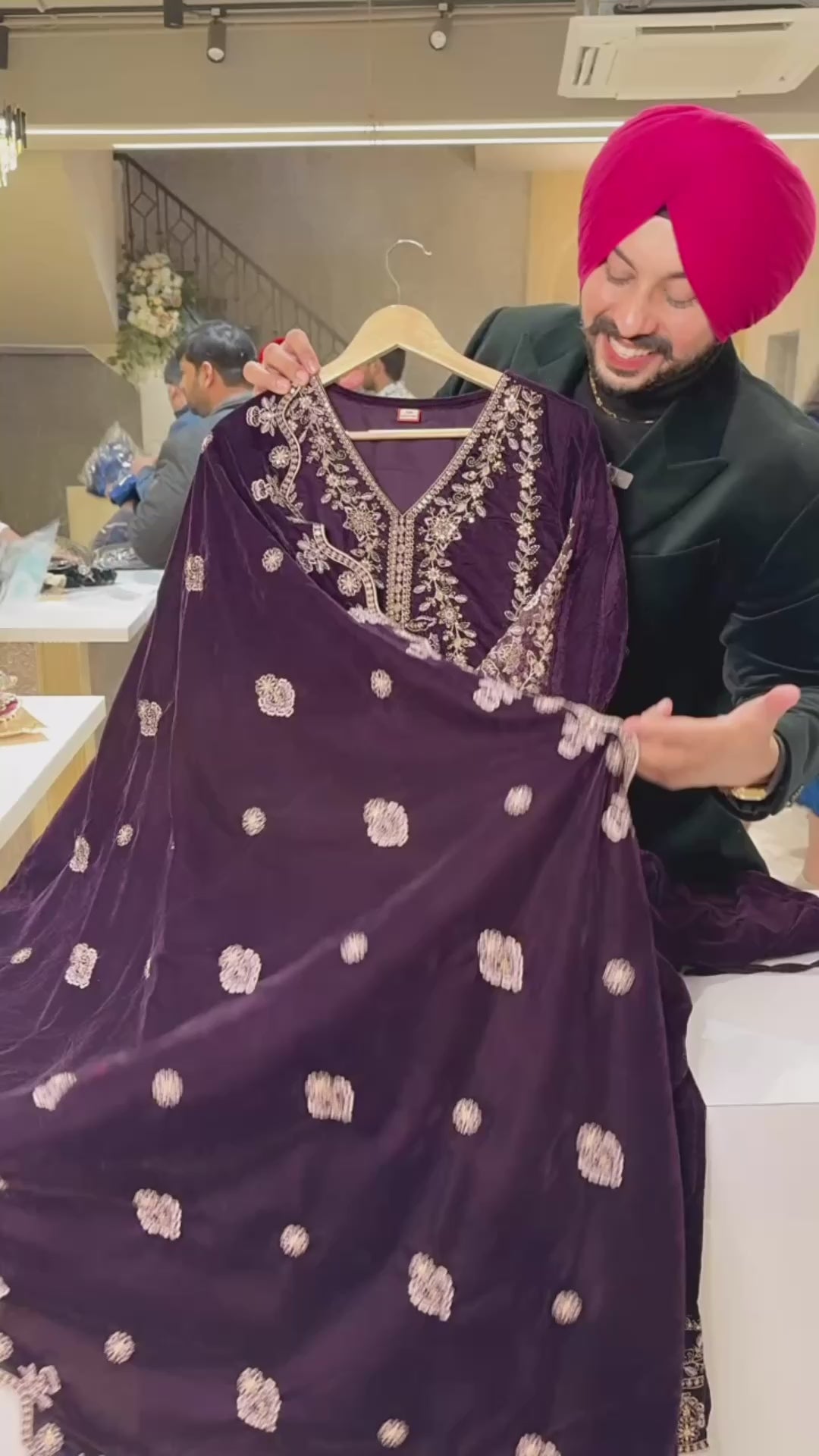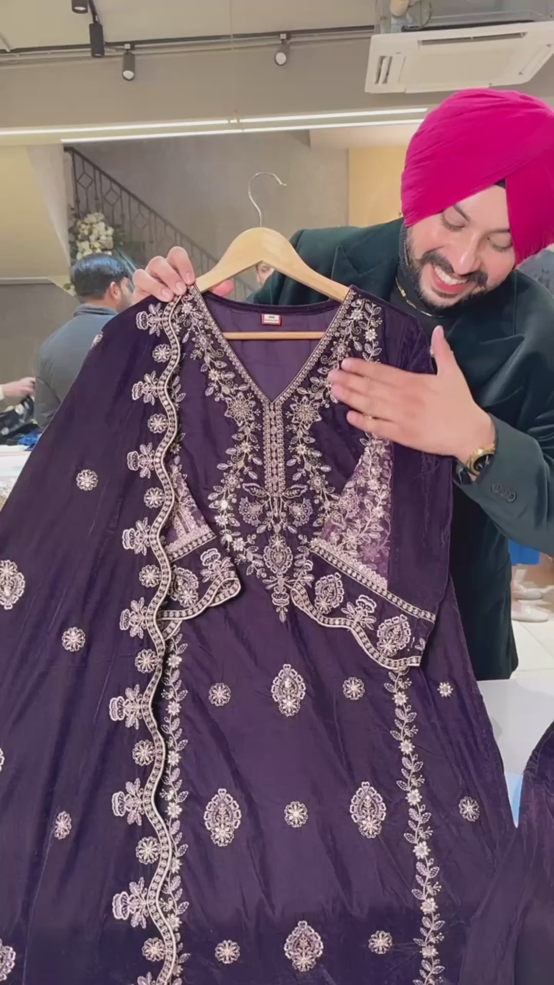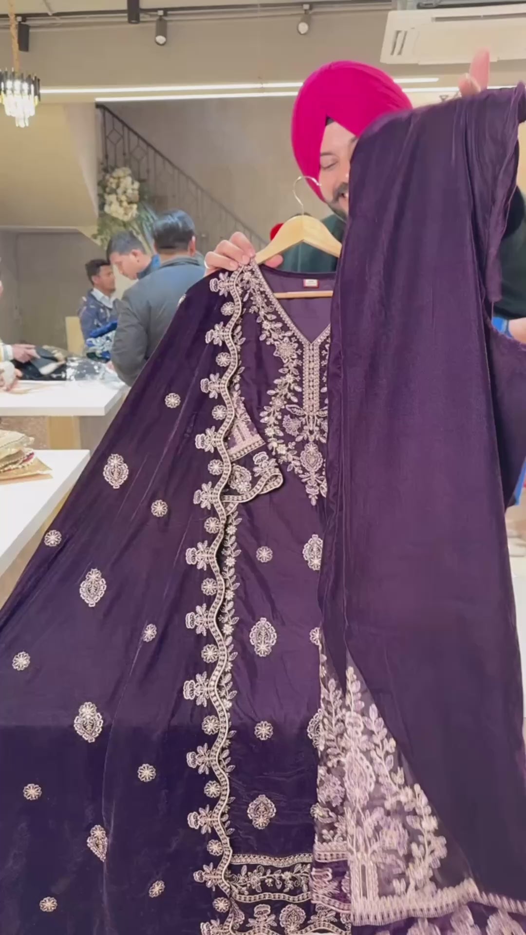 Dark wine premium Velvet Heavy embroidered Pakistani Suits with Designer Sleeves & pants