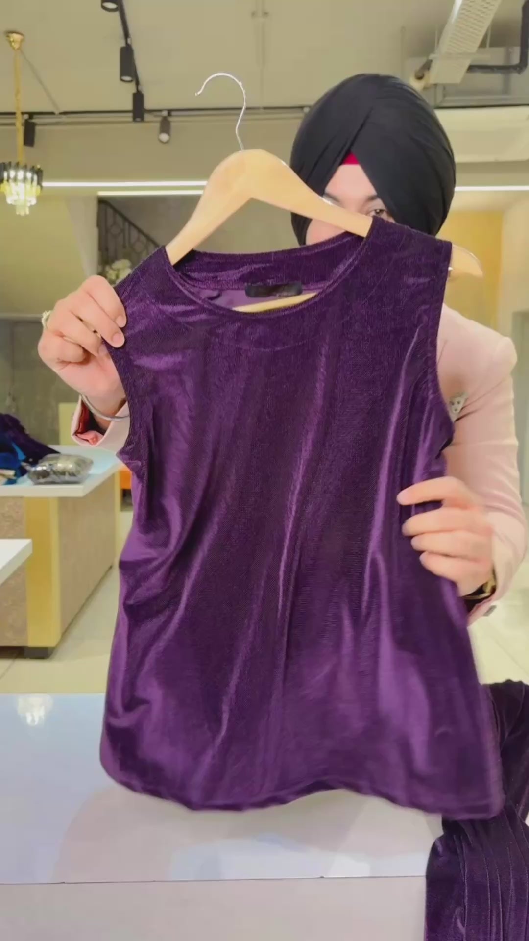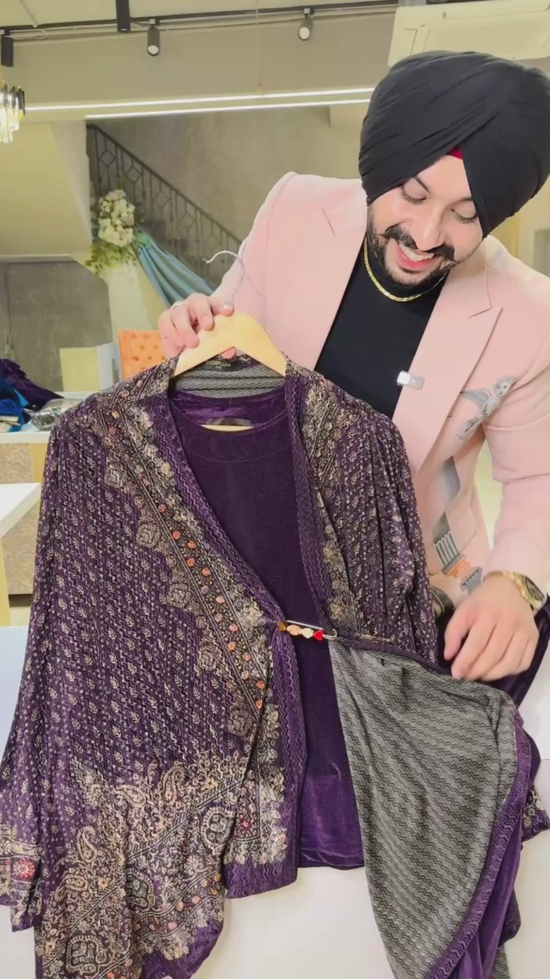 Purple velvet Indowestern Coord set with Stylish Shrug