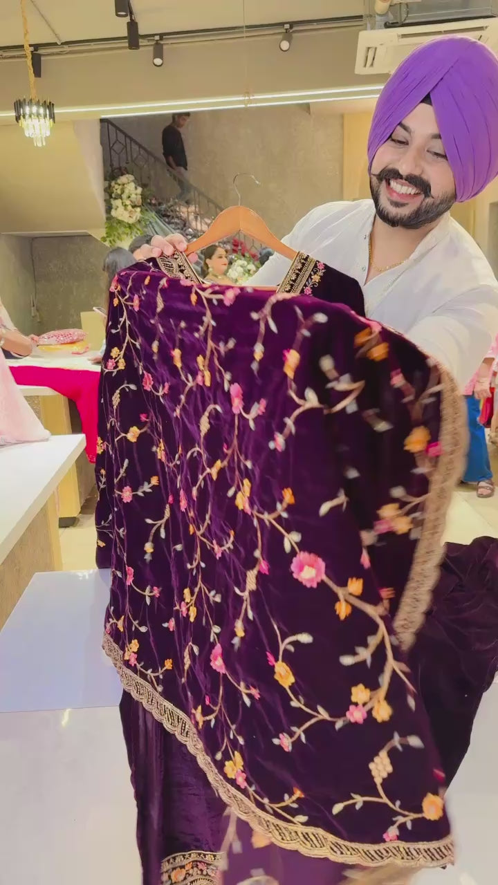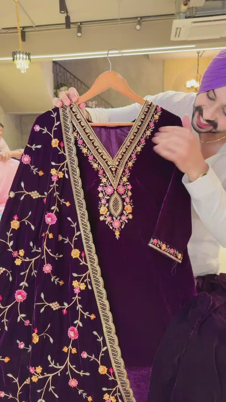 Wine Velvet Pakistani Suit with Heavy Embroidered Duppata