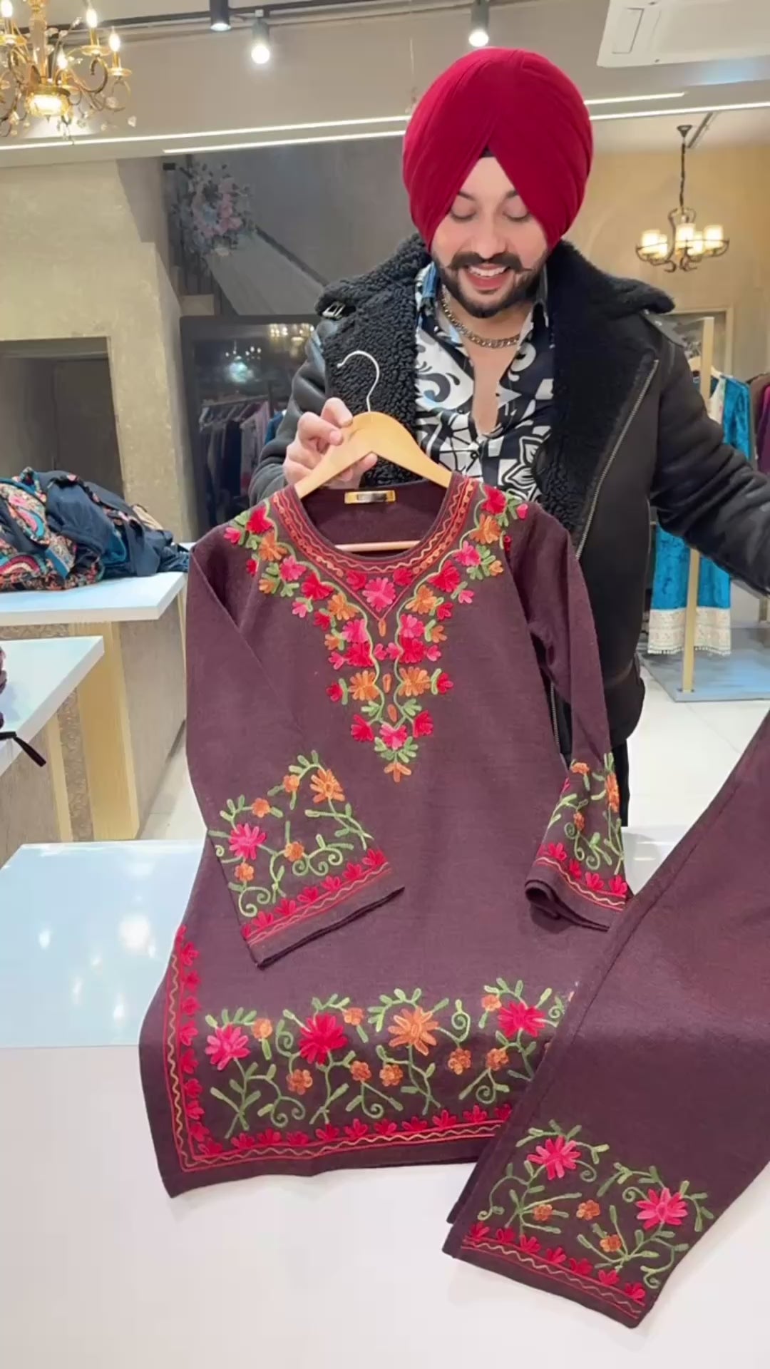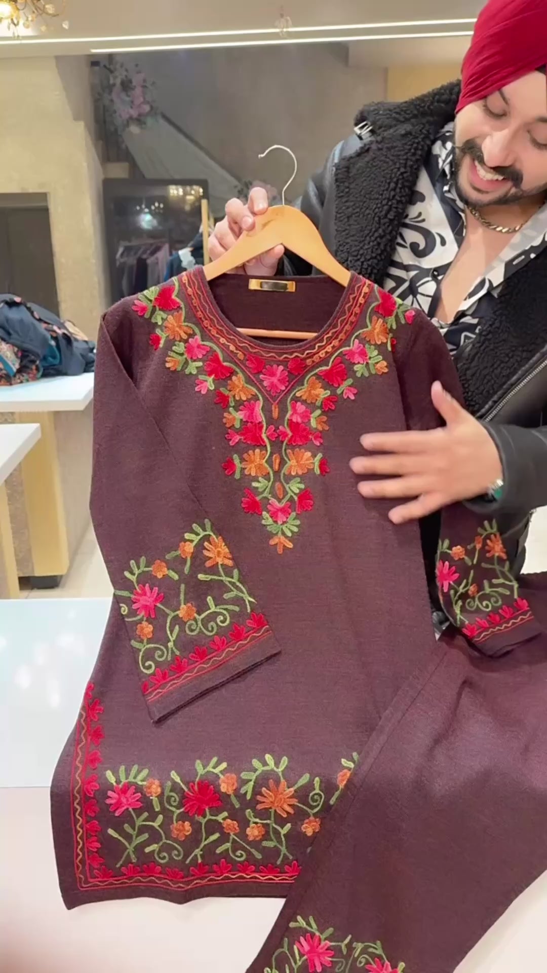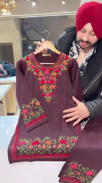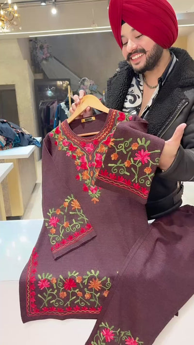 Winish Maroon Soft Woolen Kashmiri Embroidered Coord set With Beautiful Embroidered Pants