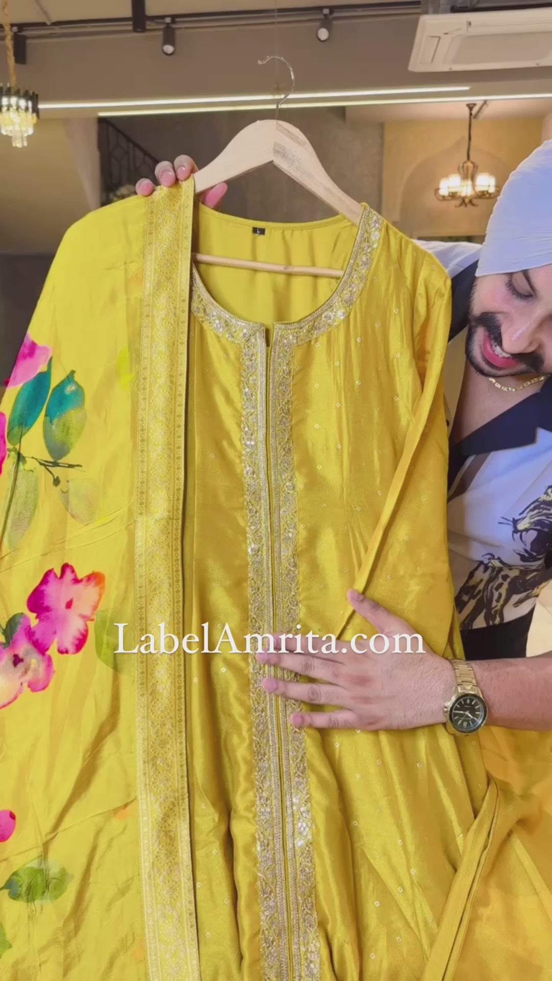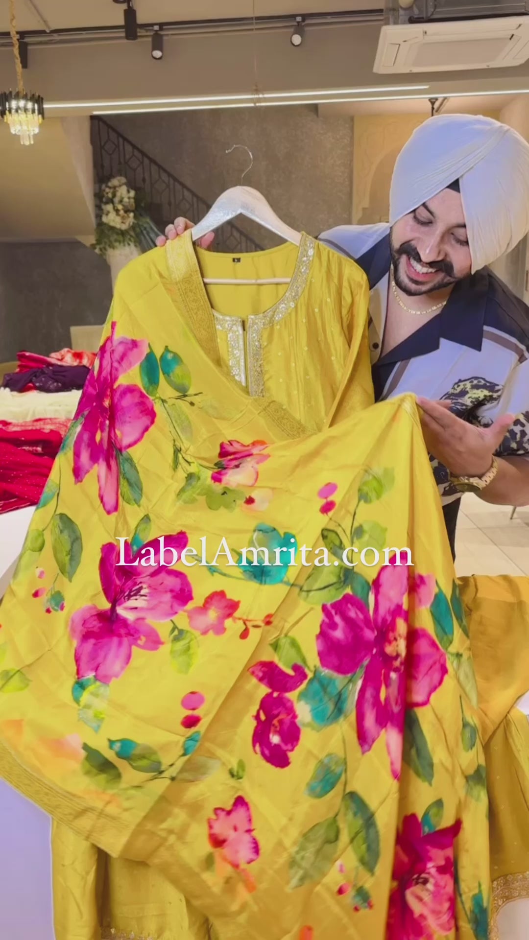 Yellow Chinon Embroidered Front slit Anarkali Suit with Beautiful Digital Floral print Duppata