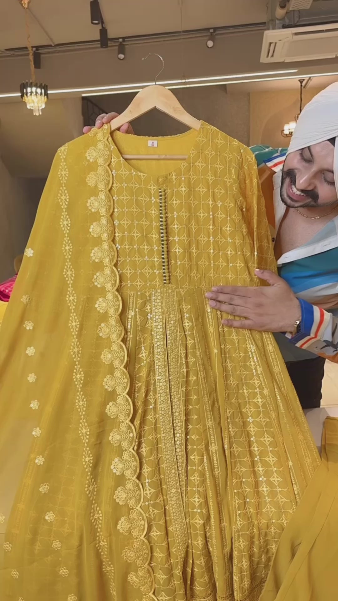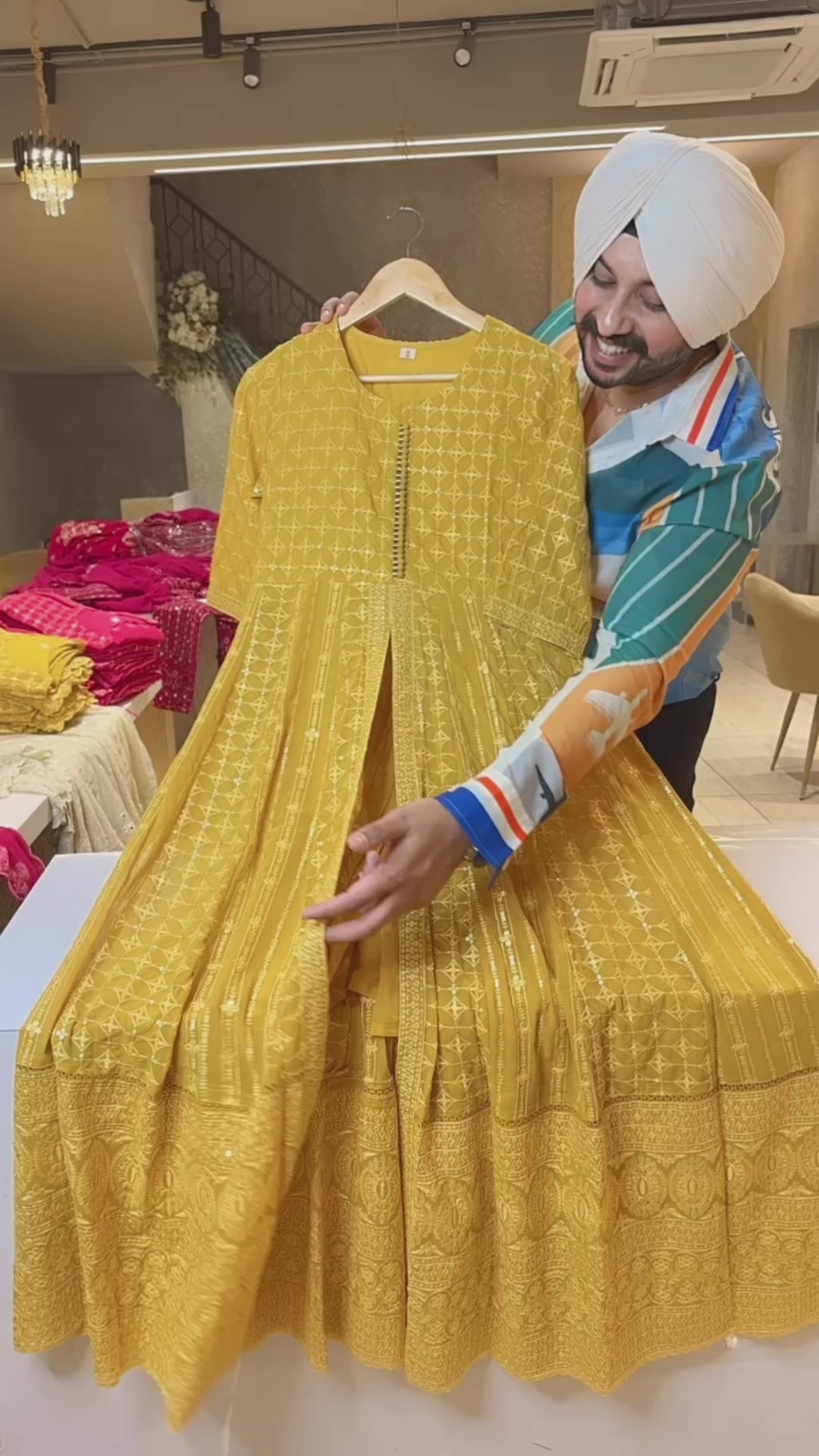 Yellow Georgette Front slit Fully embroidered Anarkali suit