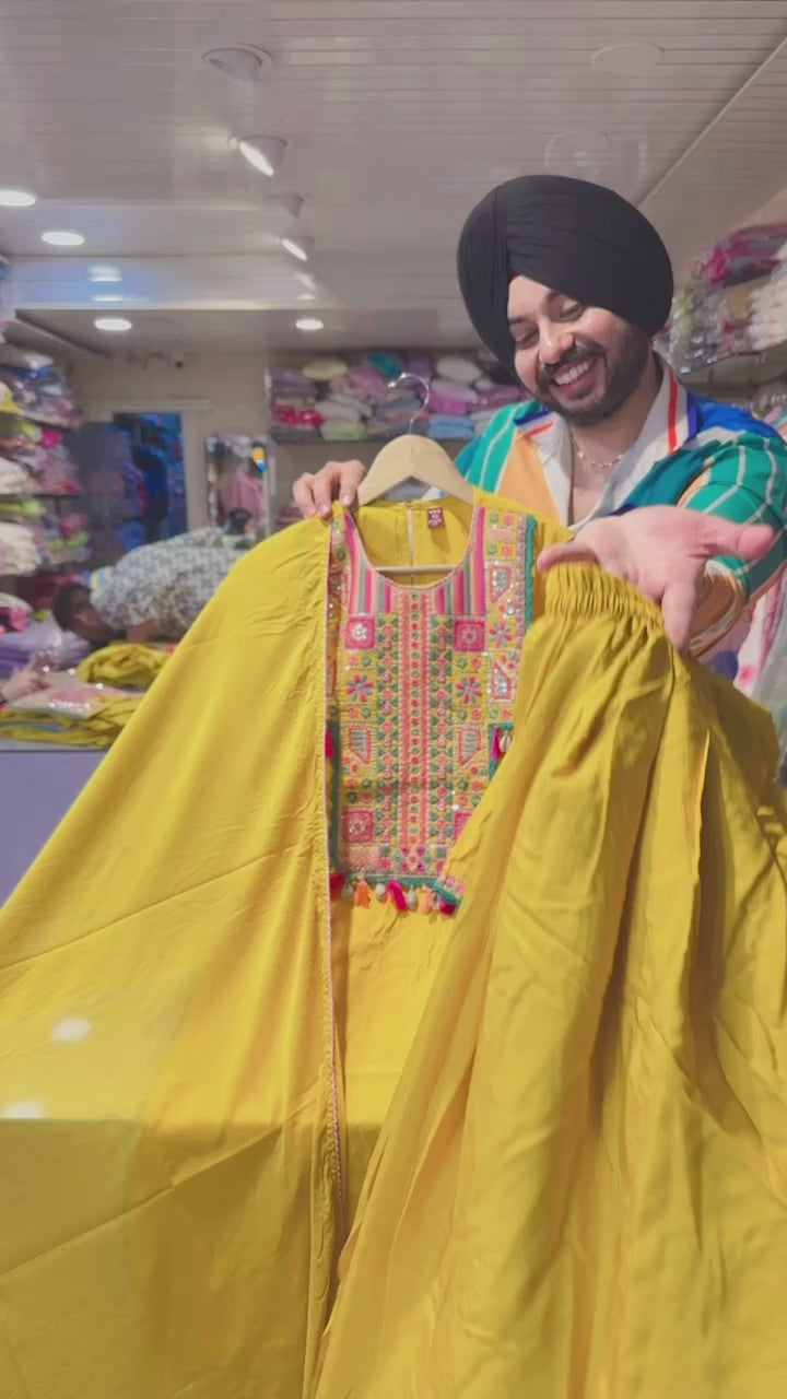 Yellow Muslin silk Apple Cut suit with Stylish Dhoti Salwar