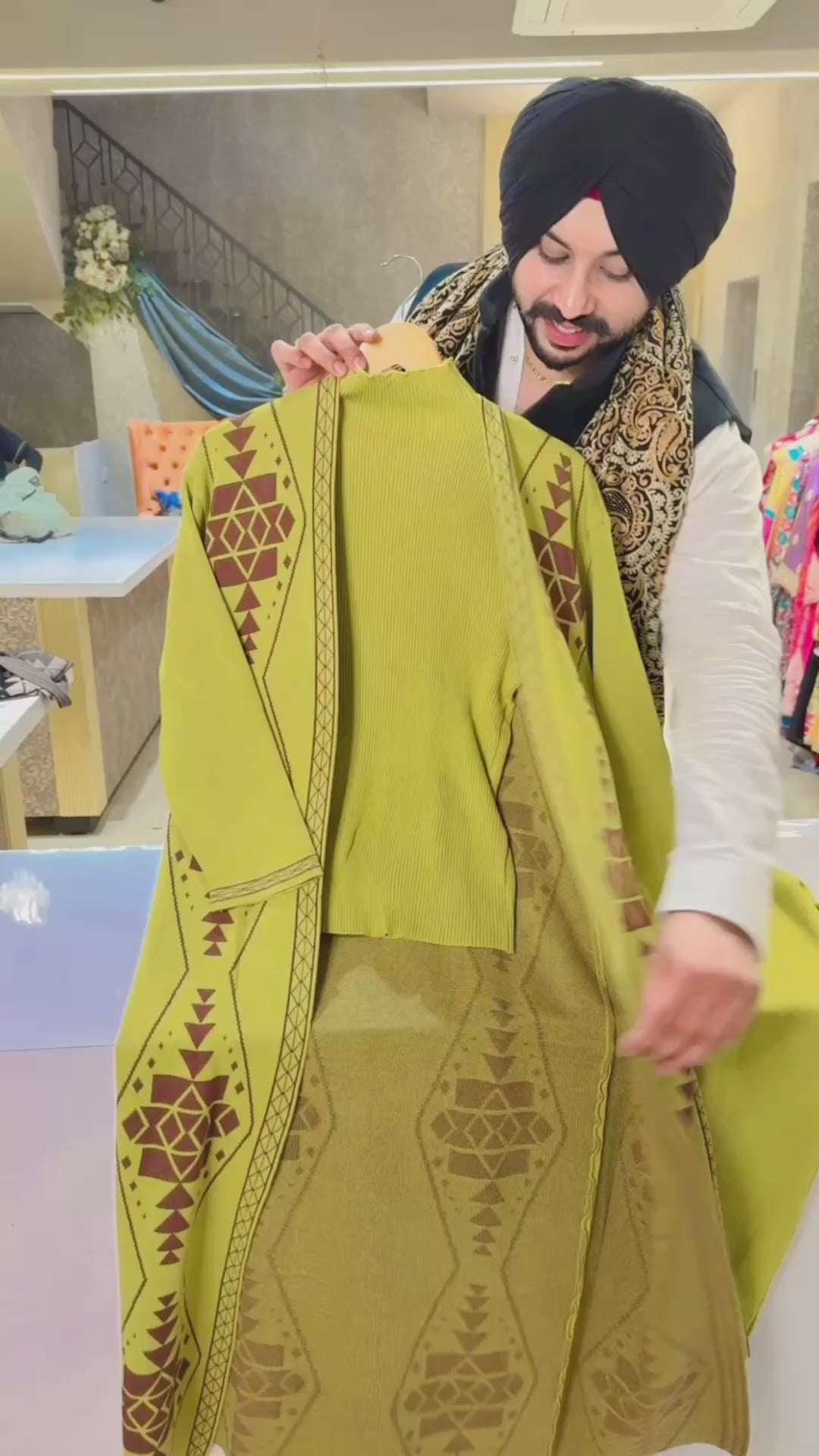 Lime Imported Woolen Fully Strechable 3 piece with Shrug