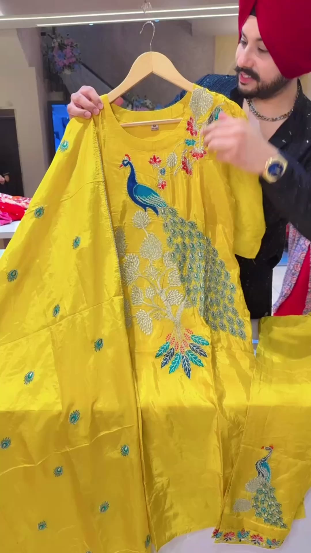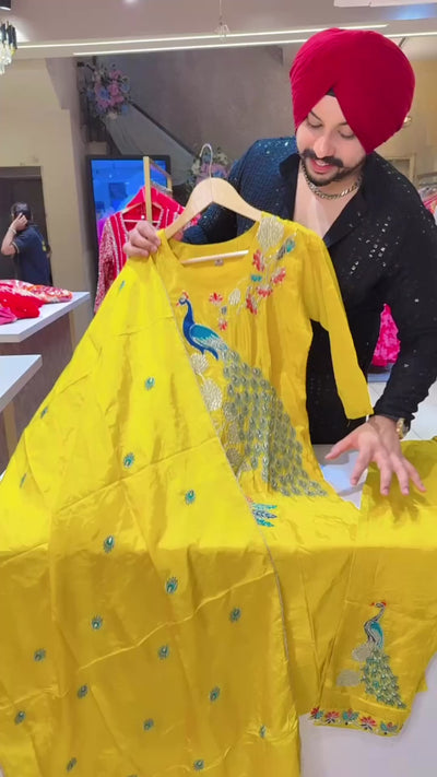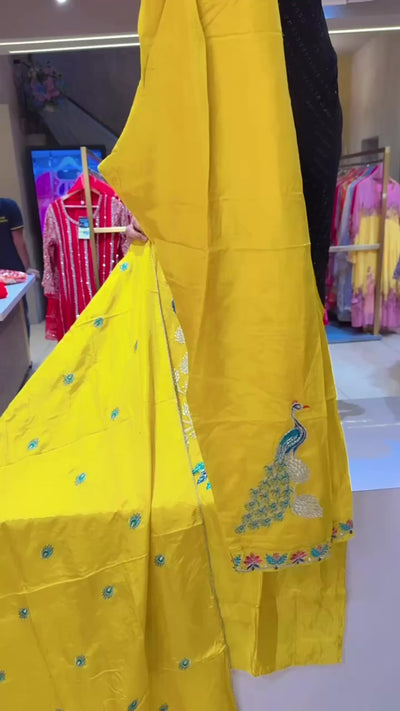 Yellow Crepe Heavy Peacock Embroidered Straight Suit With Beautiful Duppata