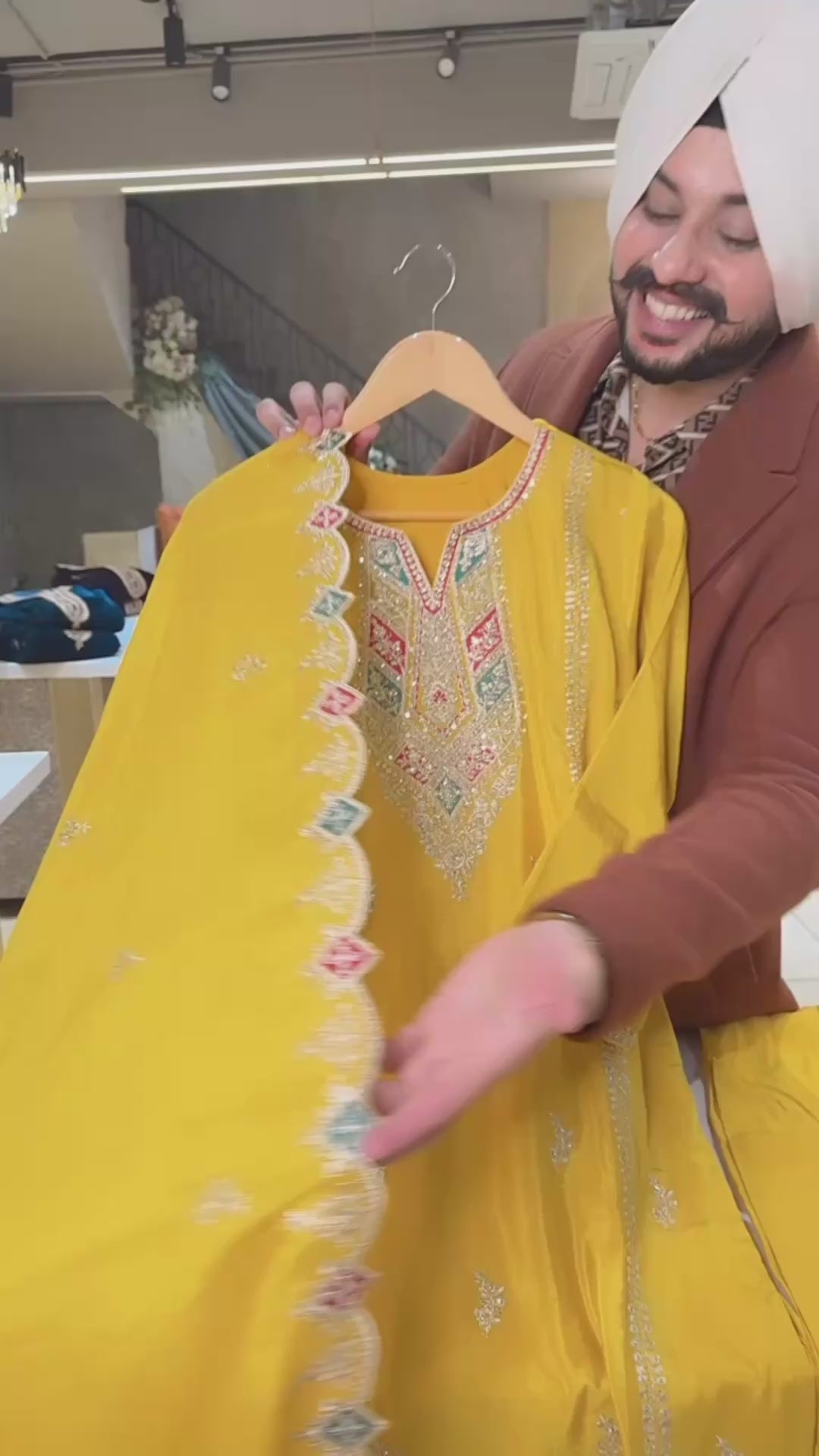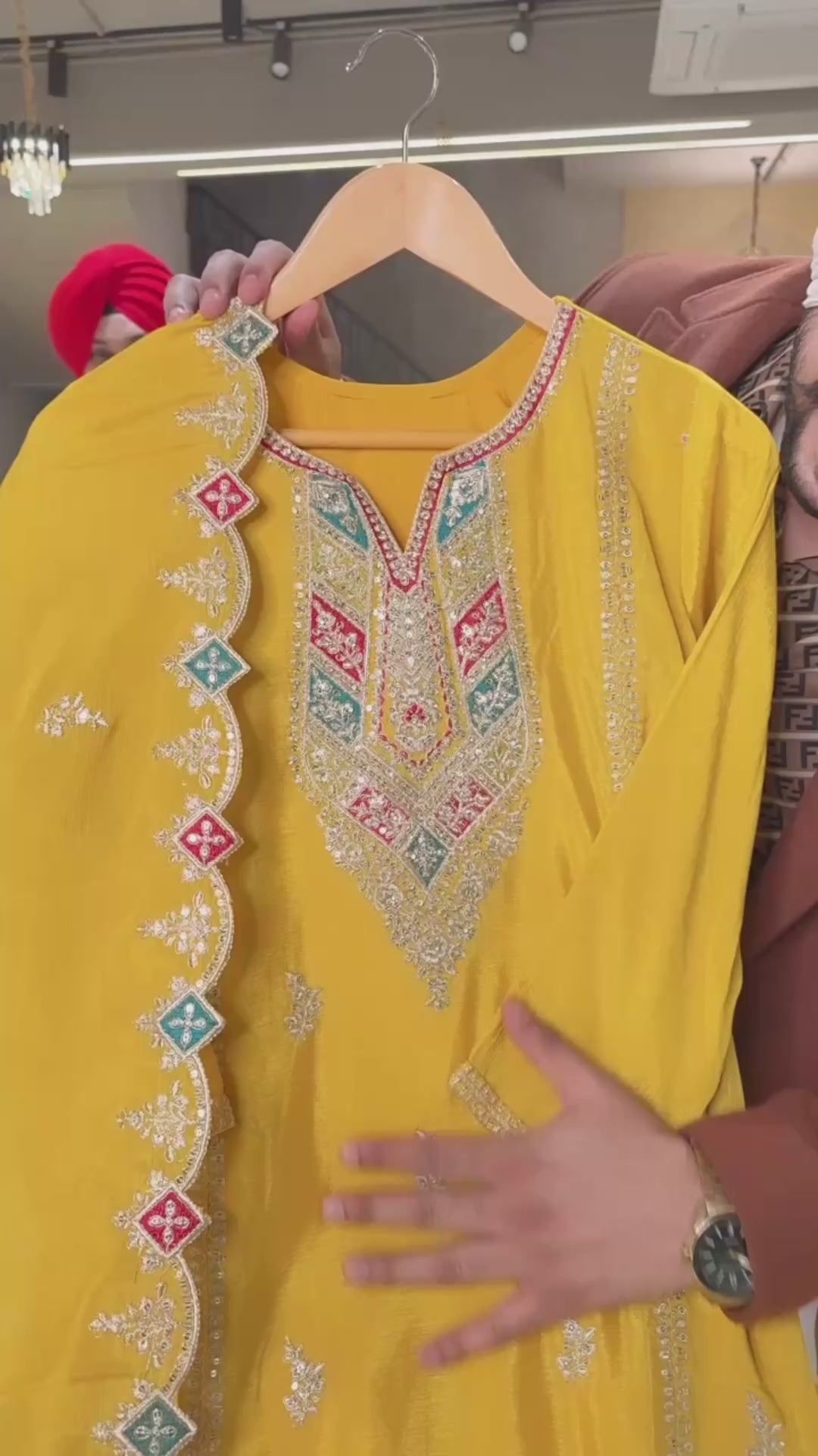 Yellow Chinon embroidered Straight suit with Beautiful Duppata