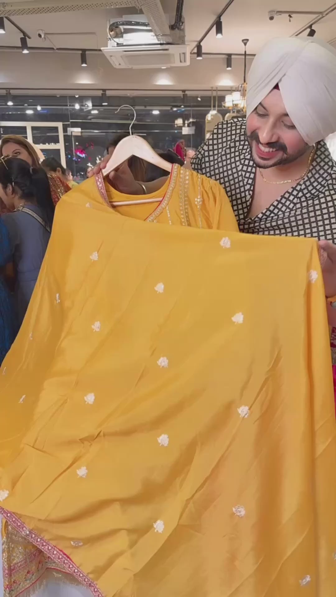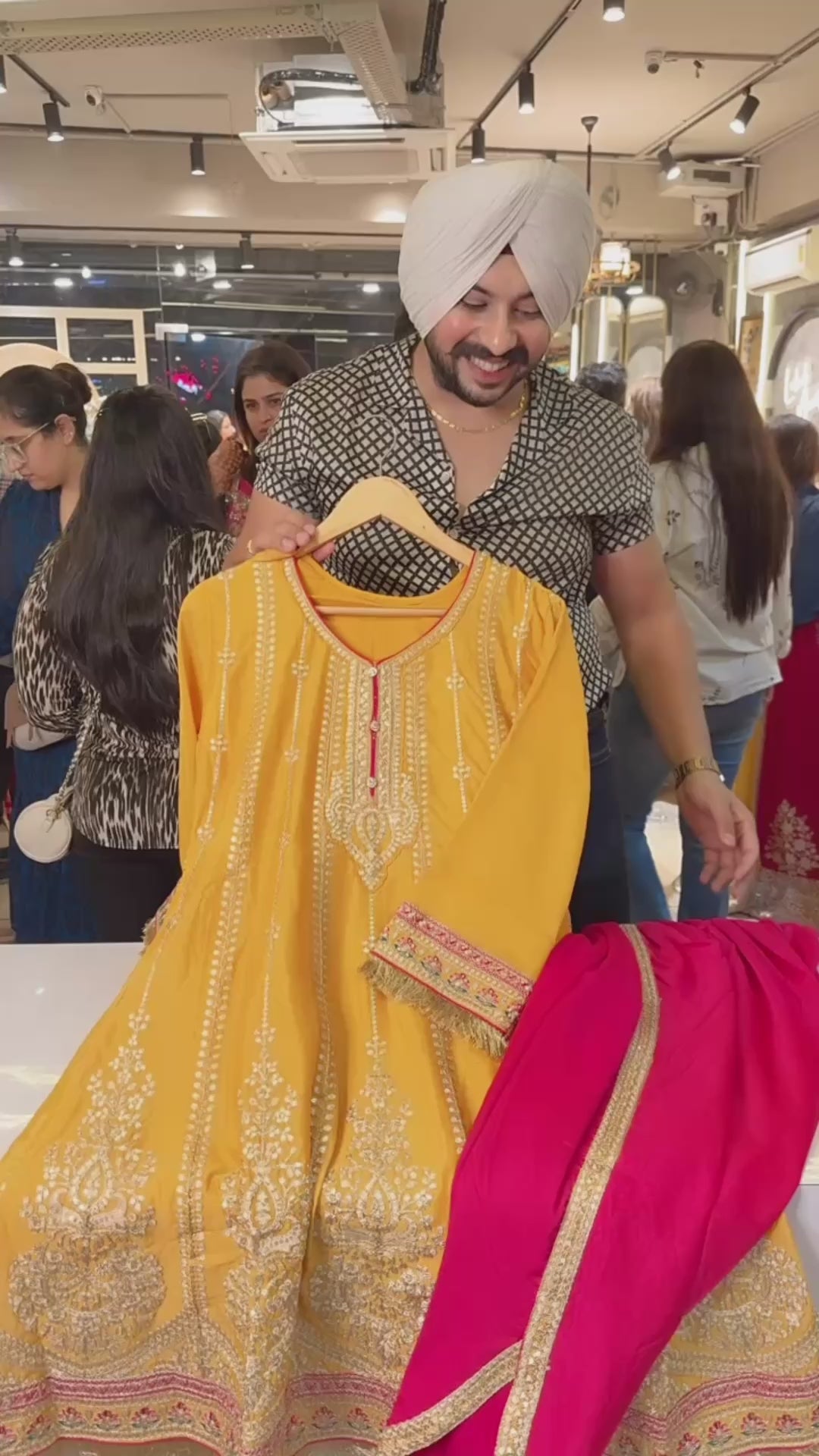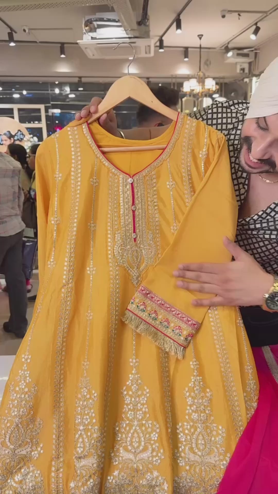 Yellow & Rani Chinon Heavy Embroidered Paplum Dhoti Suit