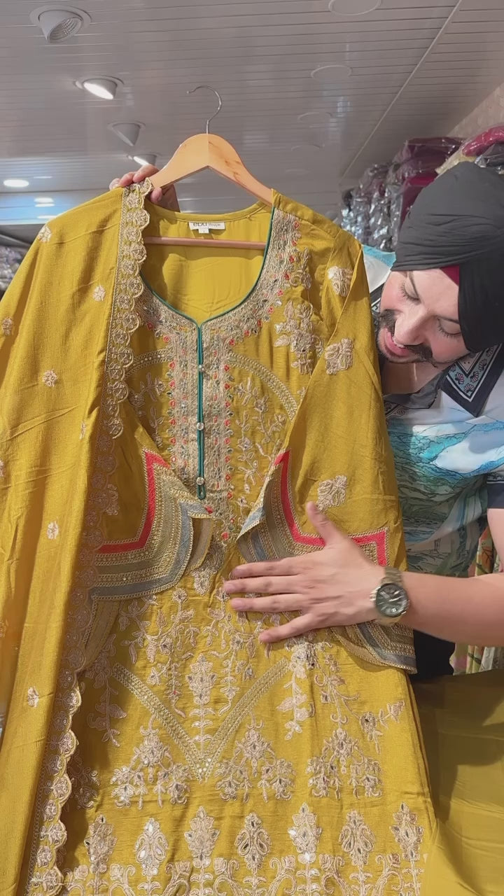 Yellow Chinon Heavy handwork Pakistani Suit
