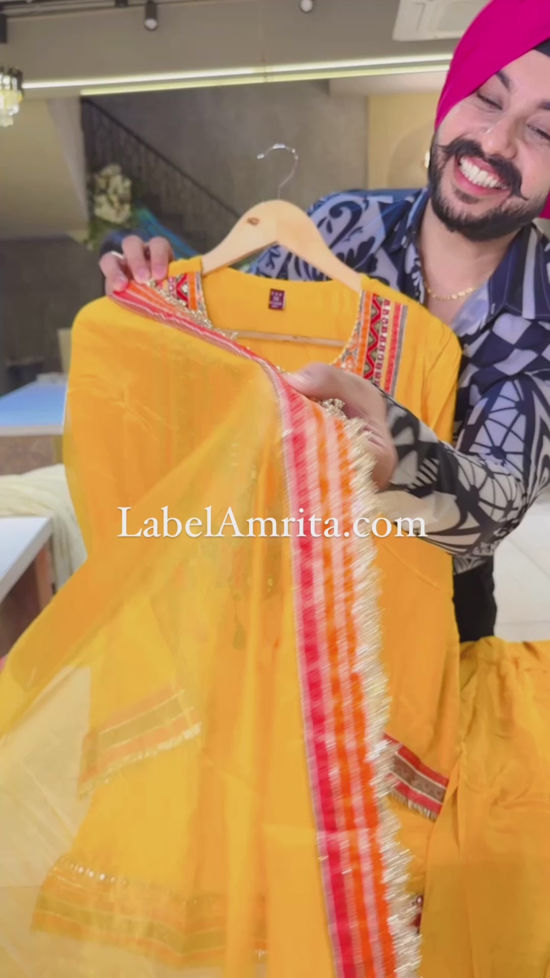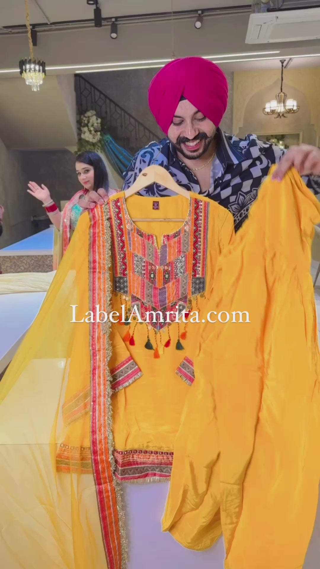 Yellow crepe Salwar suit with Kiran lace Duppata
