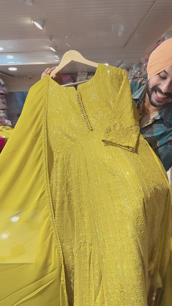 Yellow Georgette Fully Heavy embroidered Anarkali Suit