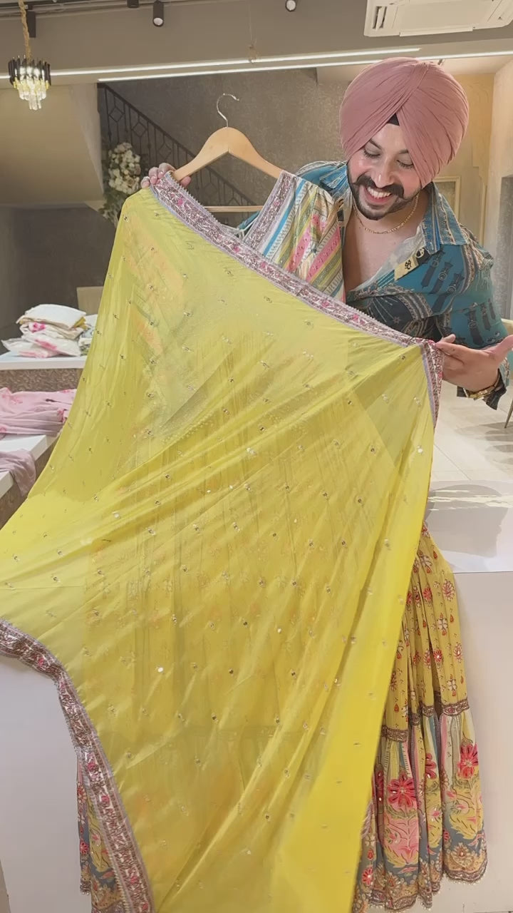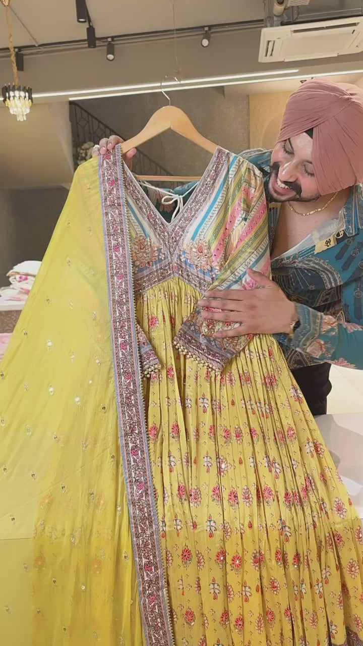 Yellow Chinon Heavy Alia Anarkali Gown with Beautiful Duppata
