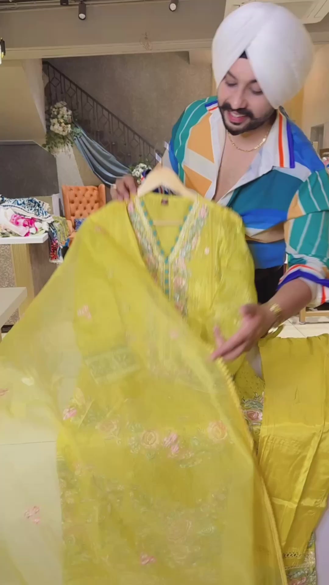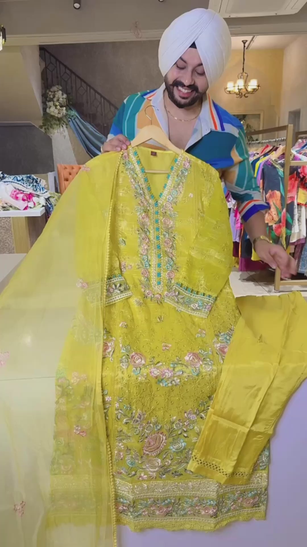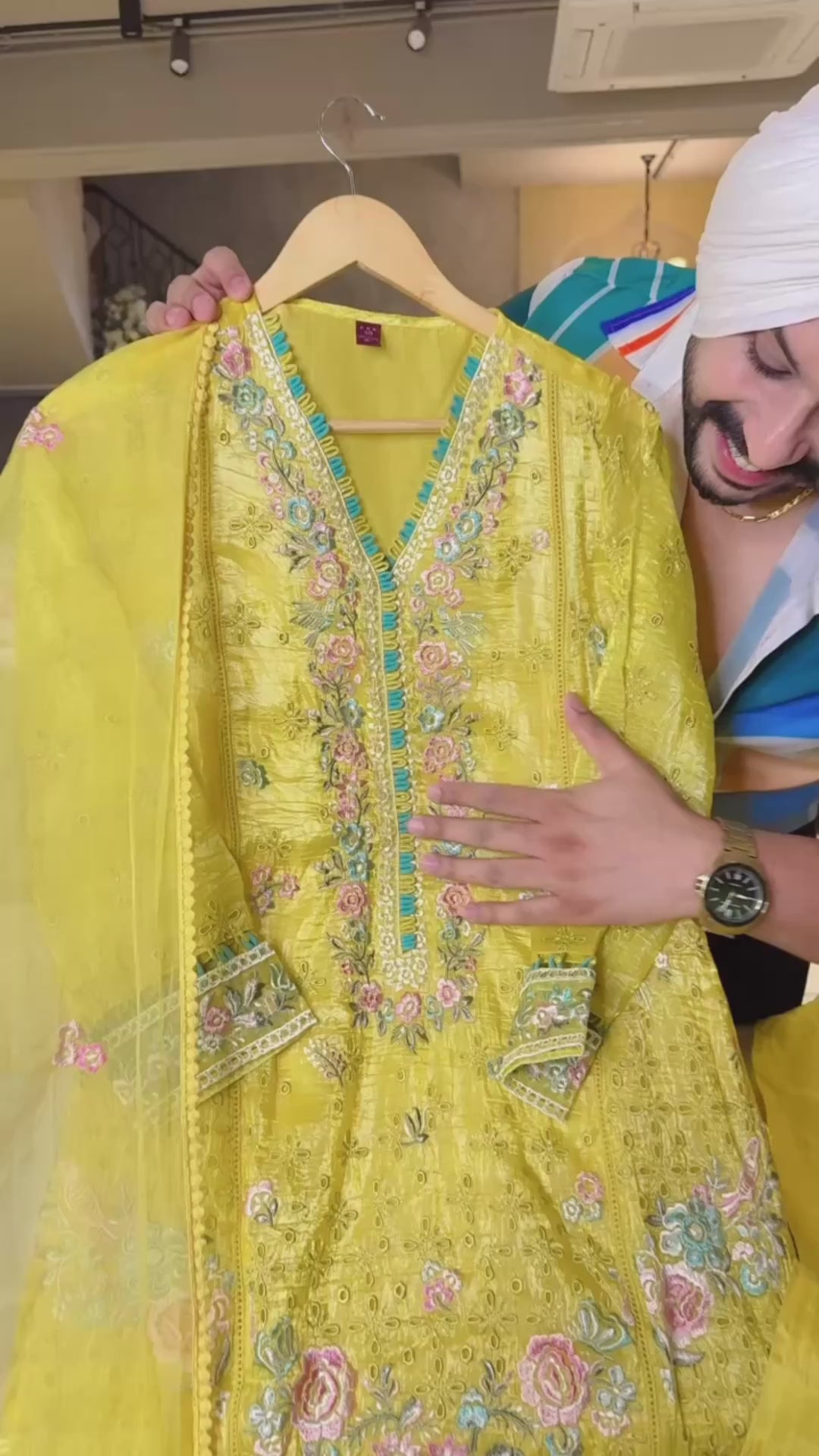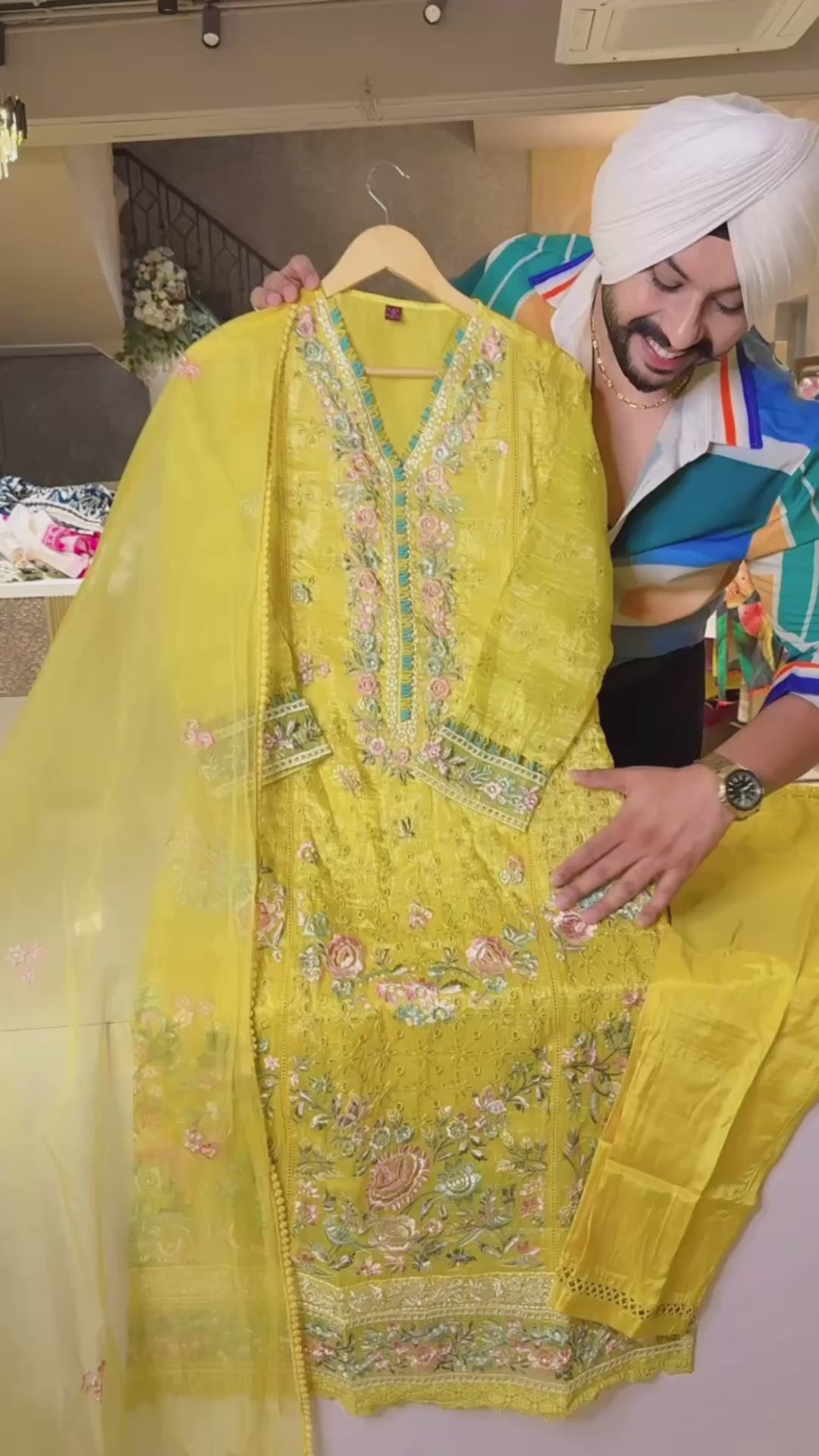 Yellow Premium Crush Organza Heavy Embroidered & Cut work Pakistani Suit
