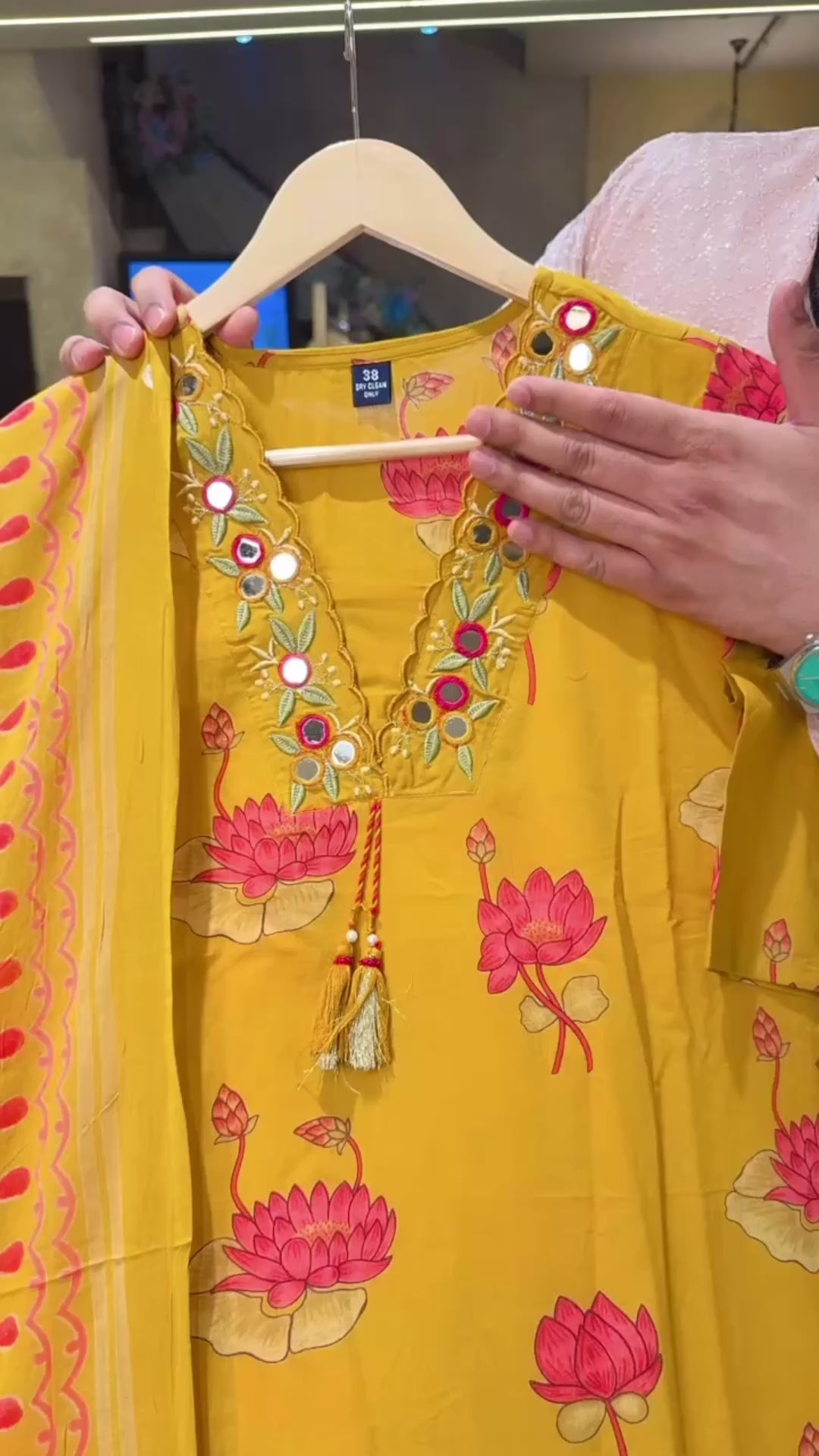 yellow pure Cotton Floral Print Office wear suit with Beautiful Embroidery Work on neck