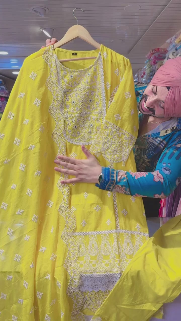 Yellow Mal Cotton Fully Embroidered suit with Beautiful Duppata