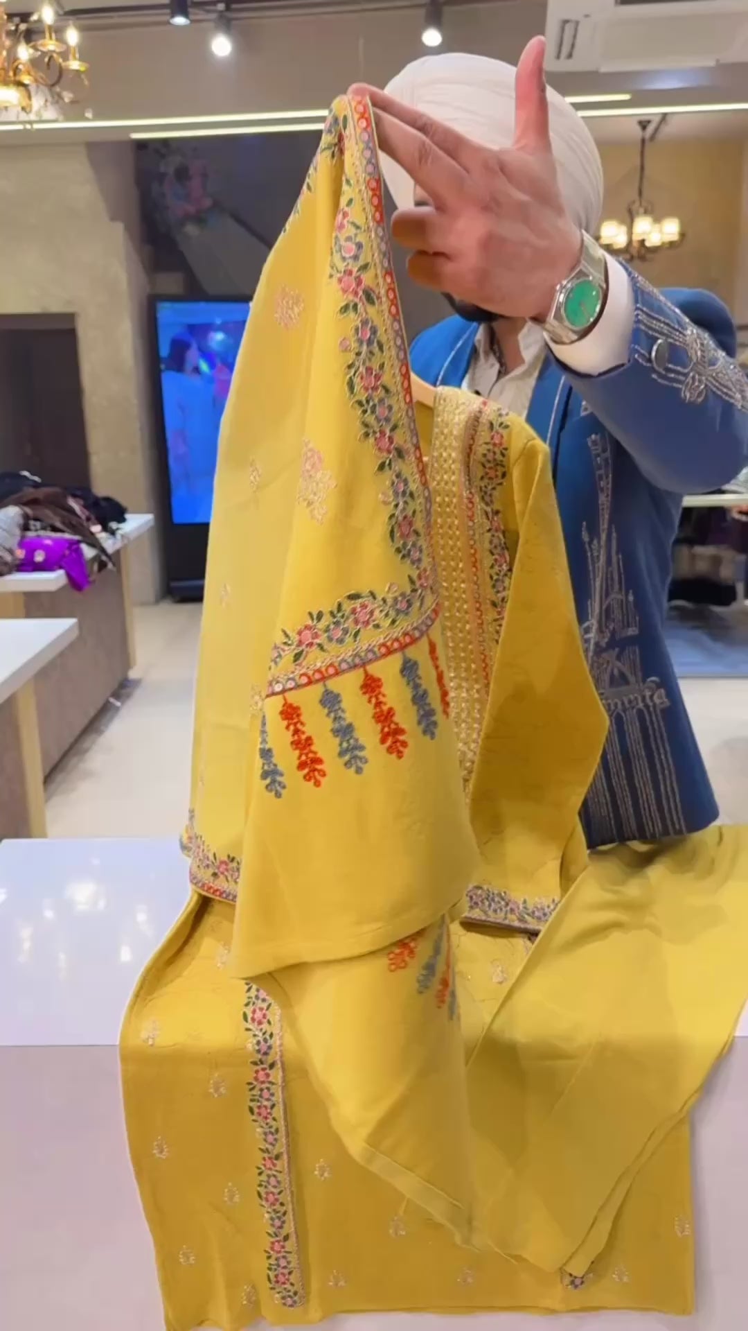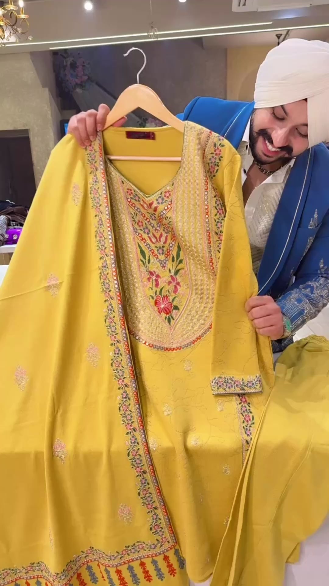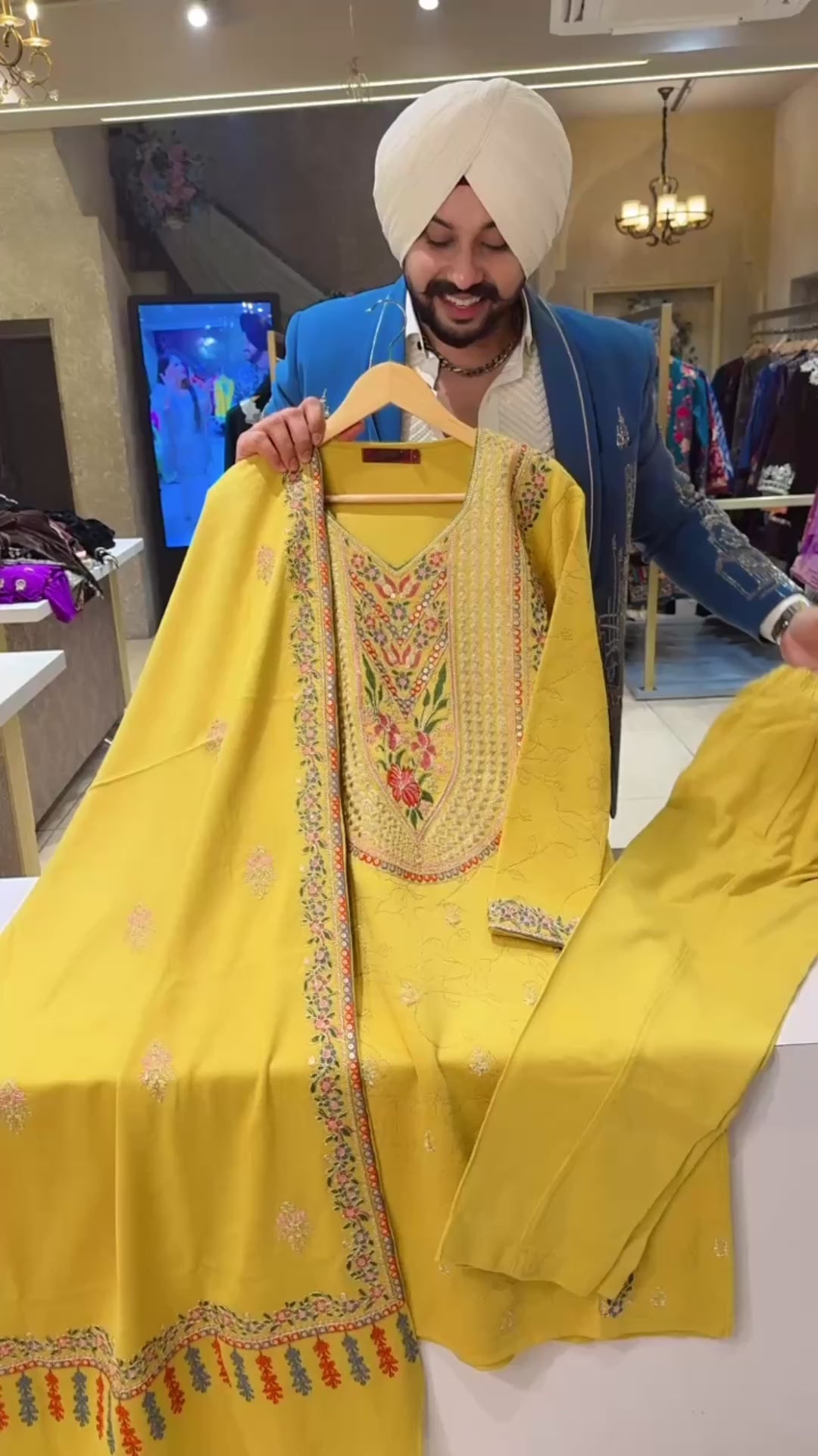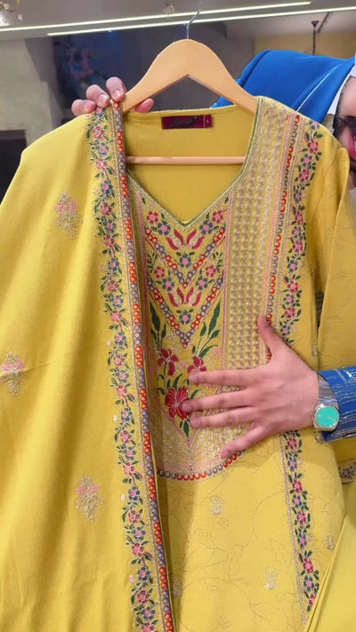 Yellow Woolen Heavy embroidered Party wear Straight Suit with Beautiful Embroidered Duppata